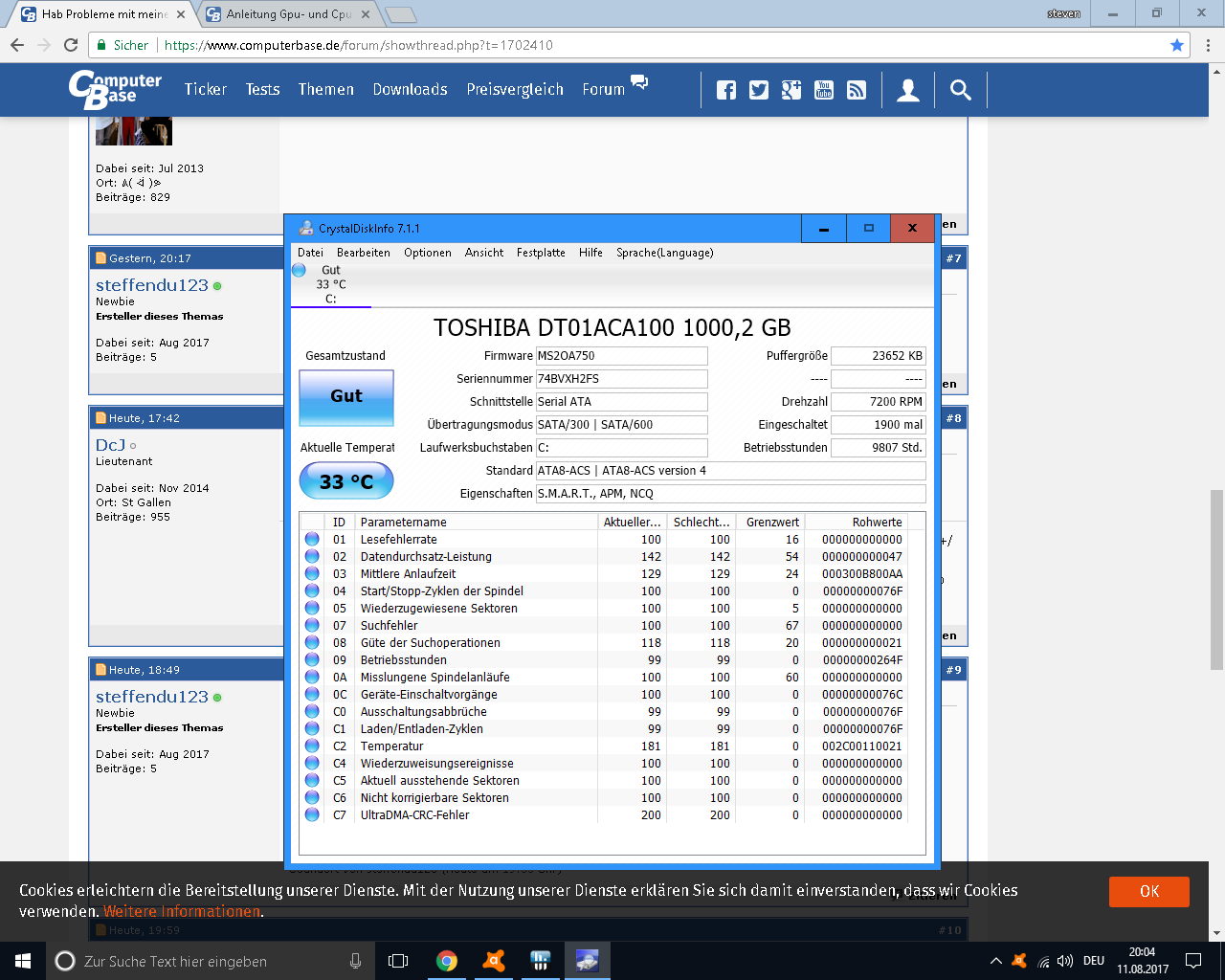 -Tempereaturen überprüft (Cpu wärend des spielens bei ca 40Grad Graka auch)