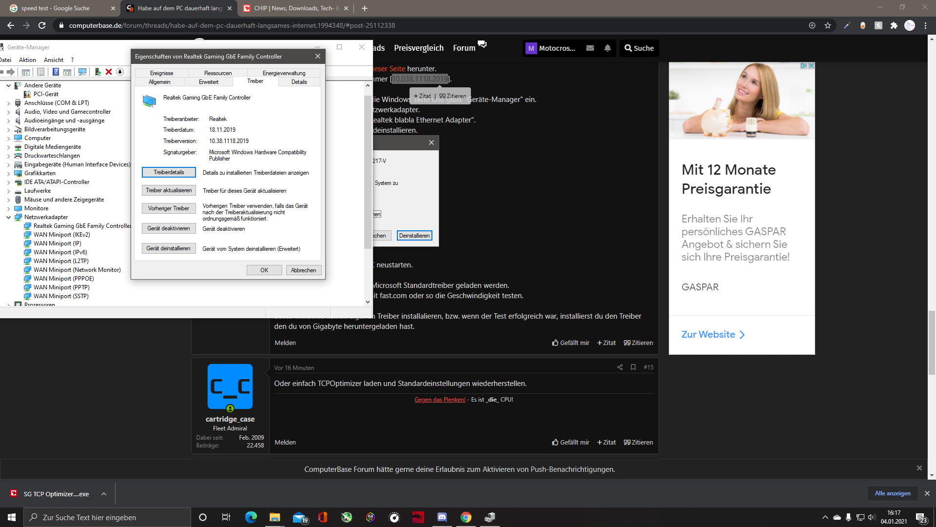ich habe seit einem gewissen Zeitraum auf dem PC egal ob Tagsüber oder Abends, nur noch schlechtes Internet d.h statt 80-90 Mbit/s im Download und 30-45 Mbit/s im Upload nur noch 10-15 Mbit/s im Download und 0,3 -0,5 Mbit/s im Upload. Laut meinem Provider ist alles mit dem Internet in Ordnung... Ich weiß echt nicht was ich da machen kann.