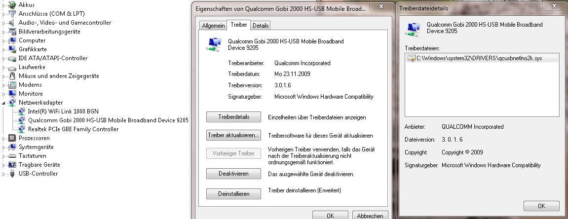 Die Treiber nennen sich Qualcomm Gobi WWAN Treiber und Manager.