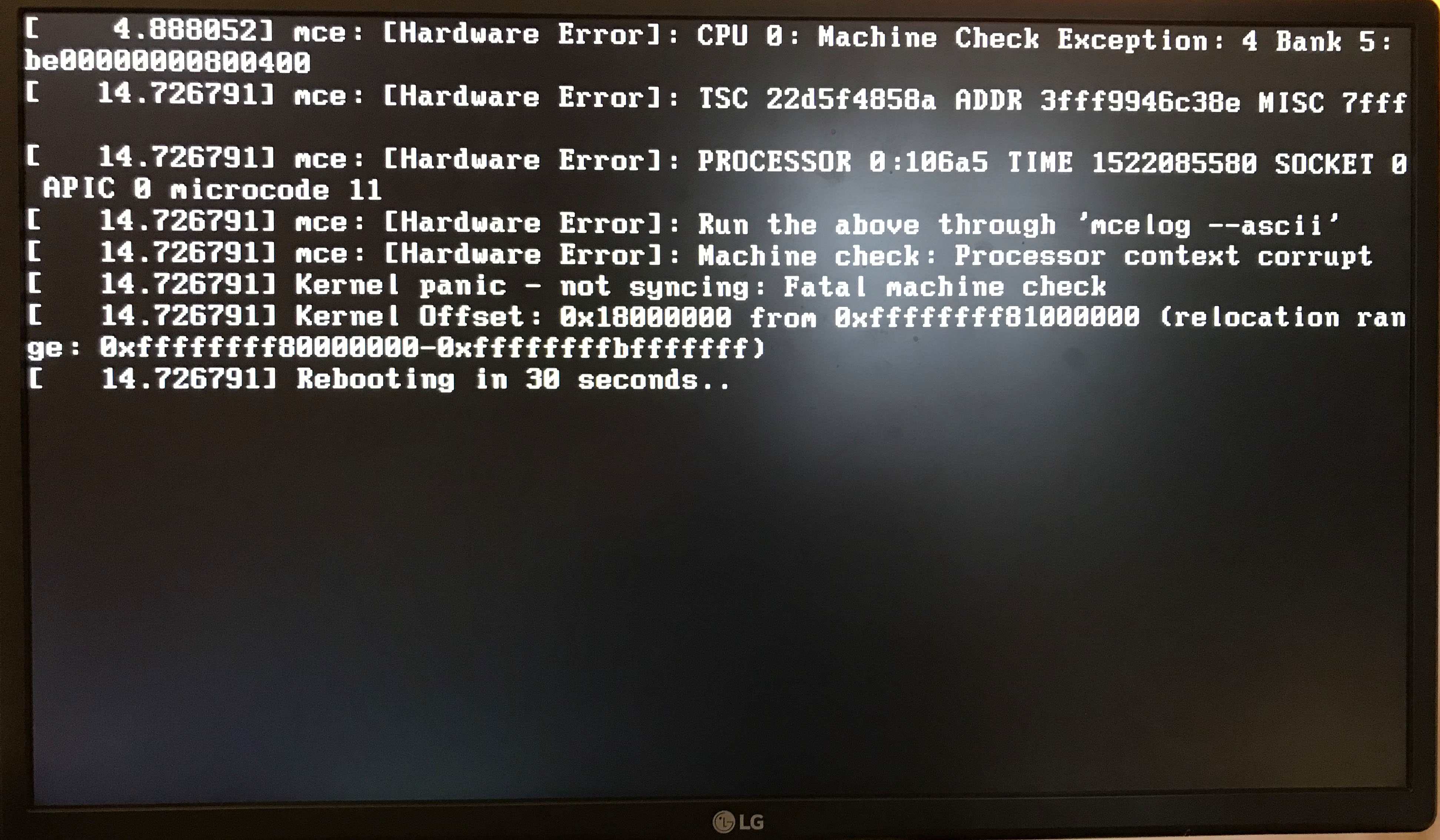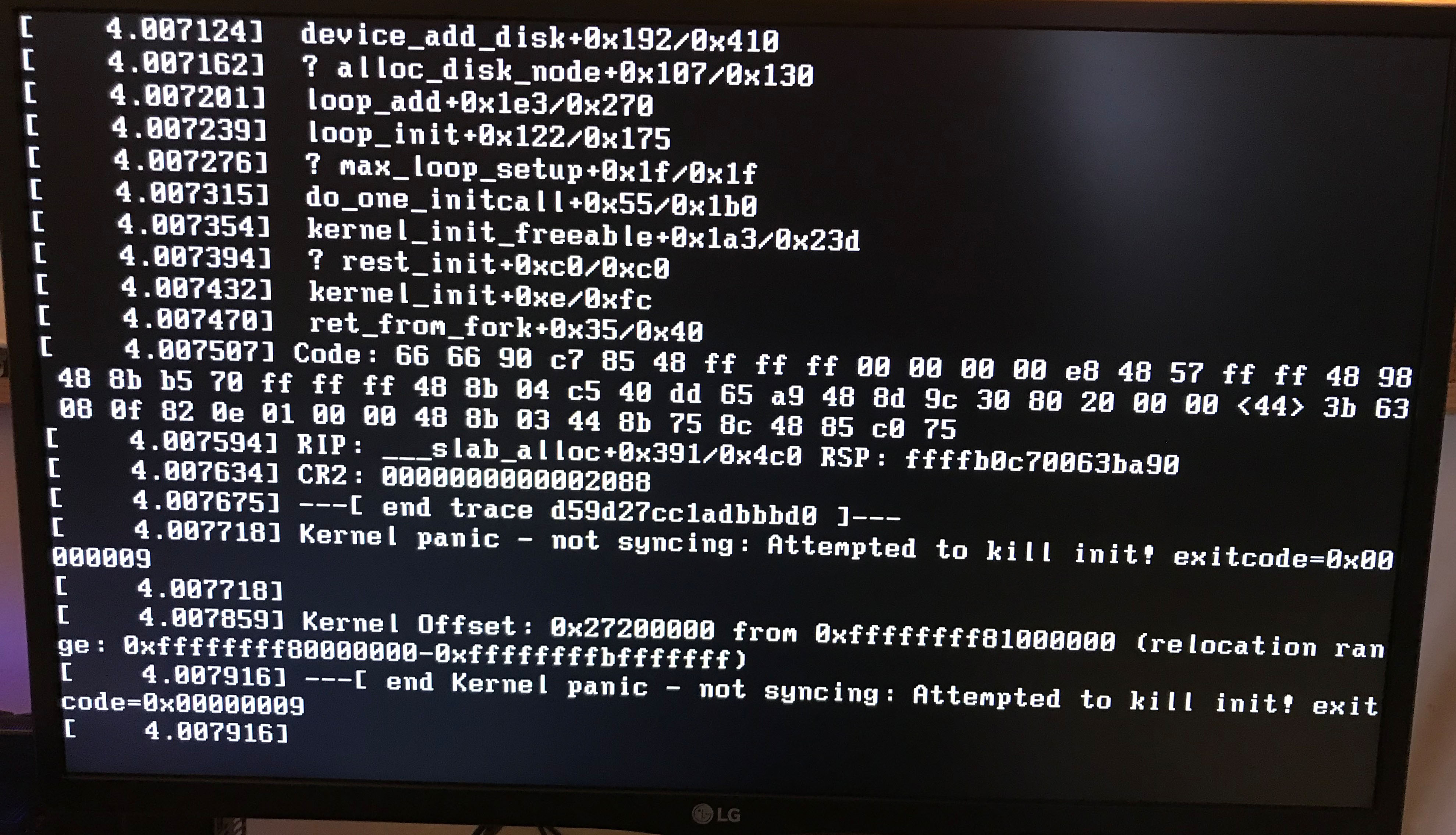 Dann habe ich auch noch von einer anderen Festplatte mit Debian zu booten versucht, da stürzt das System mit einem "Kernel Offset" ab.