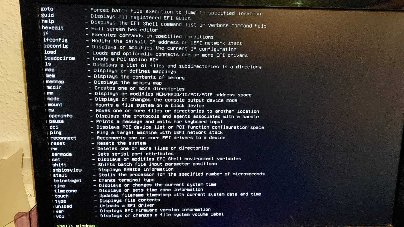 Im EFI Shell kommen folgende Befehle wenn ich help eingebe.