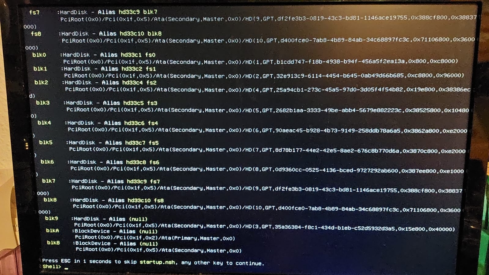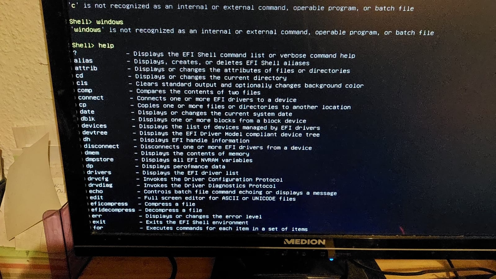 Ich hab F1 gedrückt und bin jetzt im EFI Shell gelandet wo ich nicht mehr rauskomme.