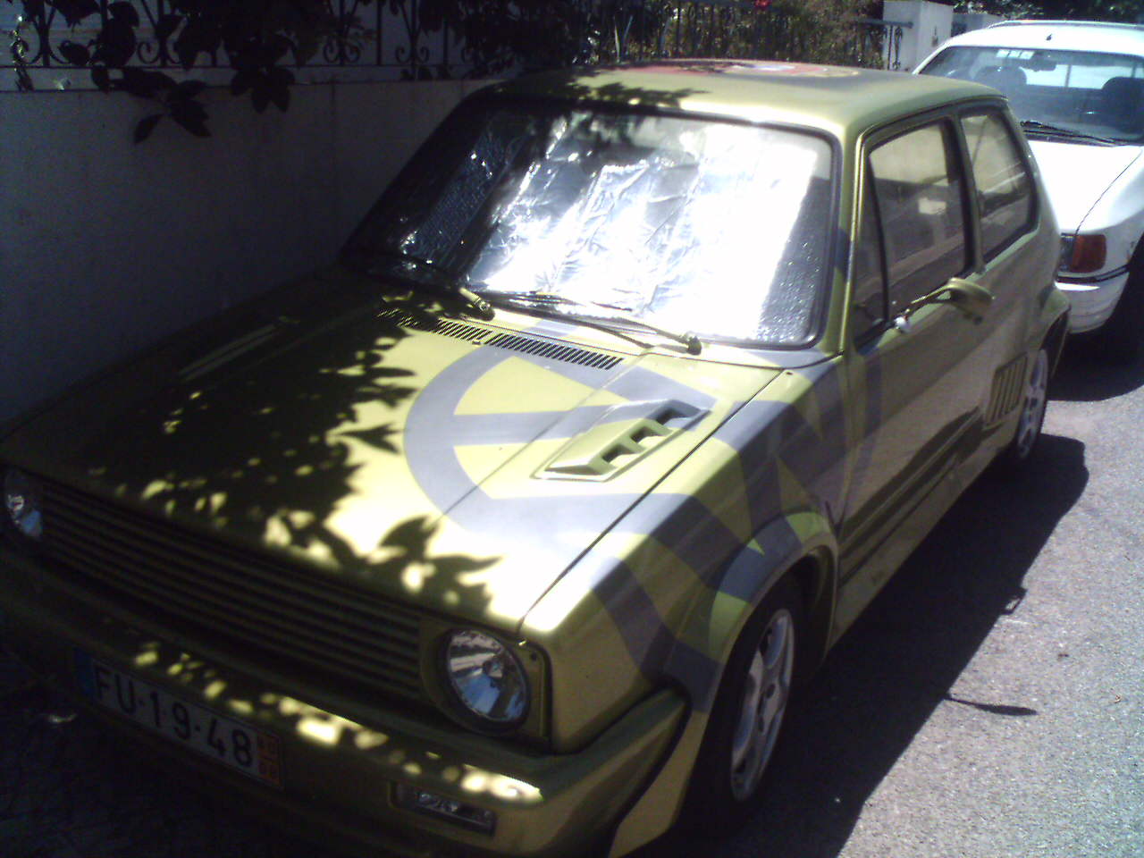Dieses "Schmuckstück" steht in Portugal in miener Straße und war vor einem Jahr noch im Orginalzustand, obwohl es nur ein Facelift und kein Ur-GTI ist find ich das trotzdem eine Schweinerei...man beachte bitte die Seitenspiegel und wenn mans nicht erkennt, die stehen jeweils auf beiden Seiten auf halbierten Golfbällen und die Scheiben sind mit Spray eingesprüht und JA in Portugal gibt es TÜV und das sogar jährlich für so alte Autos...aber dort kennt jeder jeden