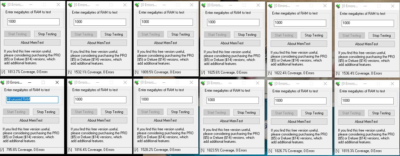 Entpacken, Memtest(in der free Version) in 12 Instanzen öffnen(also 12 Fenster).