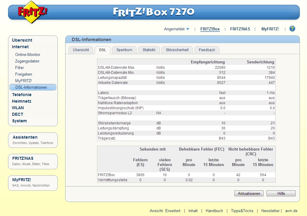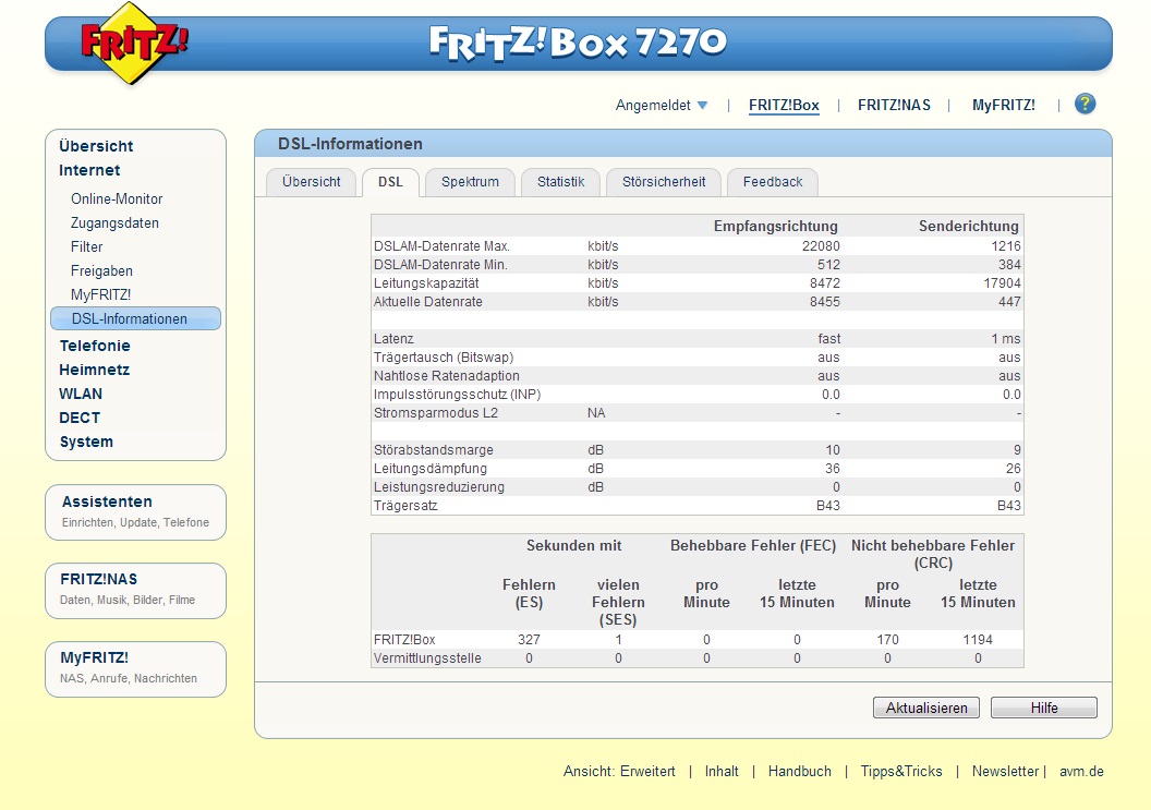 bin vor kurzem umgezogen und habe nach langem Warten endlich DSL von Netcologne. Leider ist die Verbindung recht instabil. Habe schon an der Störsicherheit rumgespielt, aber vor allen Dingen Mittags und Nachmittags am Wochenende ist es recht schlimm (hatte gerade eben 6 Disconnects in 45 Minuten).