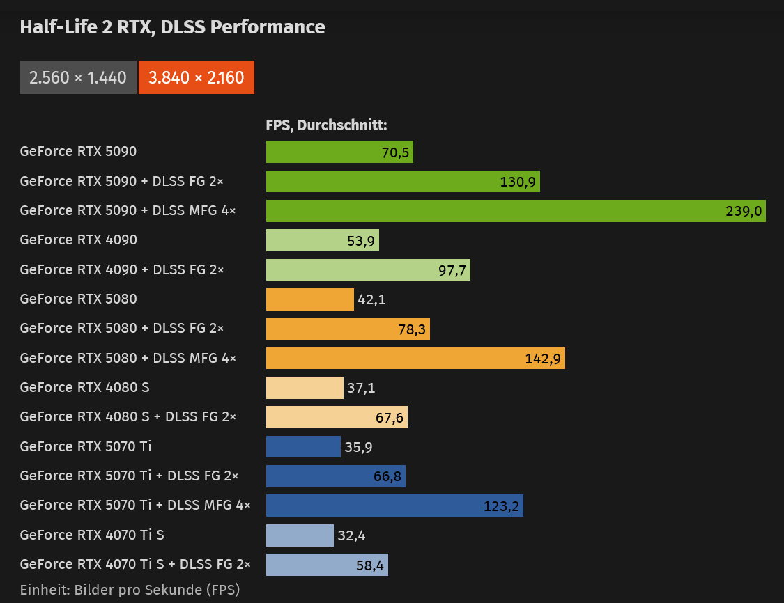 Wow, so würde ich HL2 durchaus nochmal durchspielen (ich weiß gar nicht, zum wievielsten Mal ). Schlussendlich kann es mir ja egal sein, ob ich mit meiner RTX 4090 und 160 FPS oder einer RTX 5090 mit über 300 FPS spiele. Mein Monitor macht ja nur 144 .