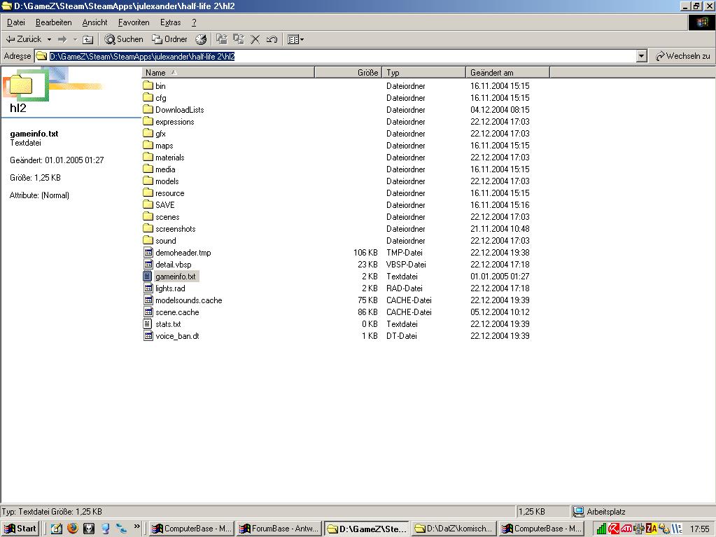 Bei Deathmatch z.B. Ordner Steam/.../half-life 2 deathmatch/hl2mp