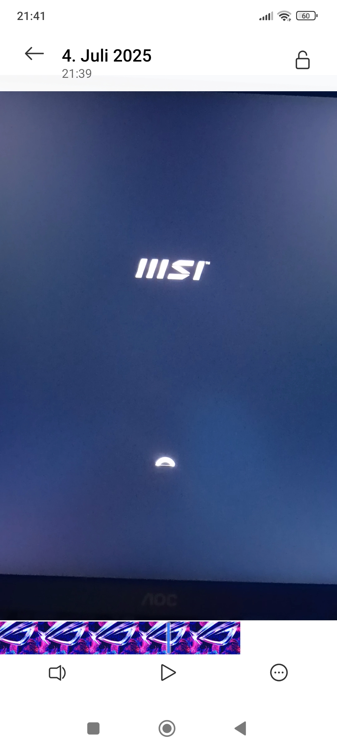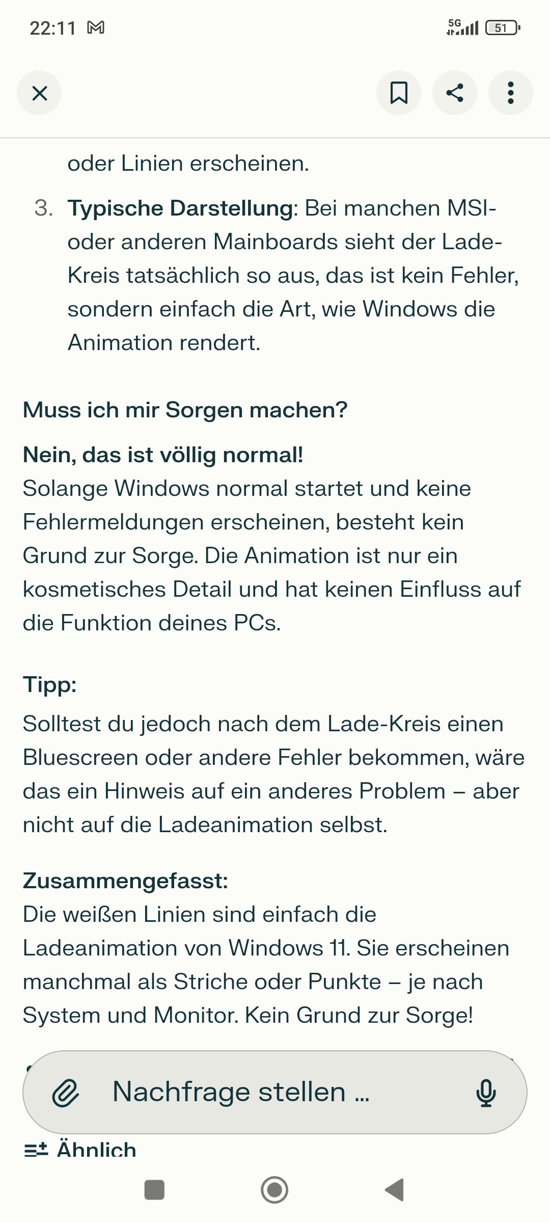 Und beim Starten des PCs zeigt der Ladekreis von Windows kleine weiße Linien im lade Kreis