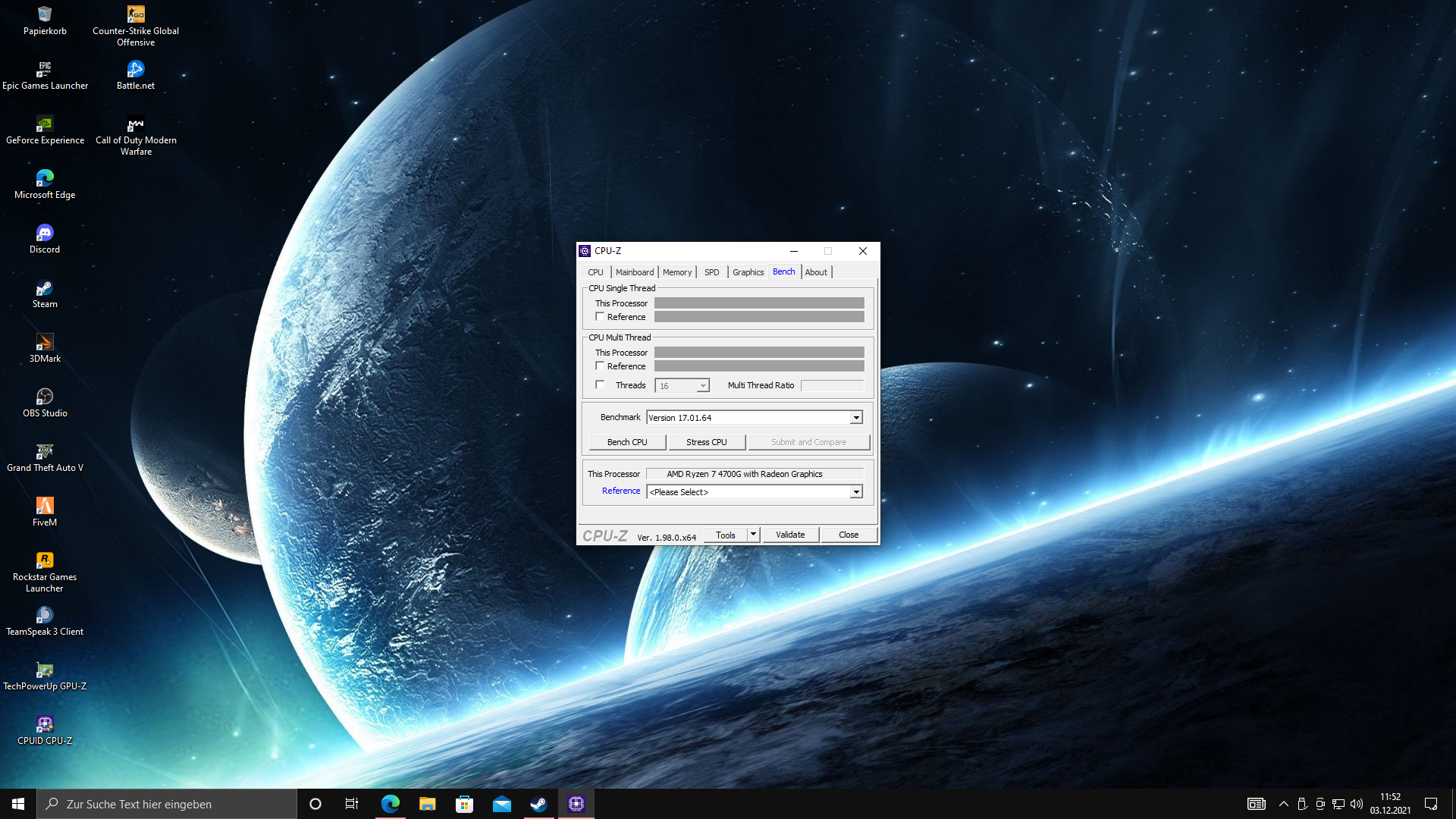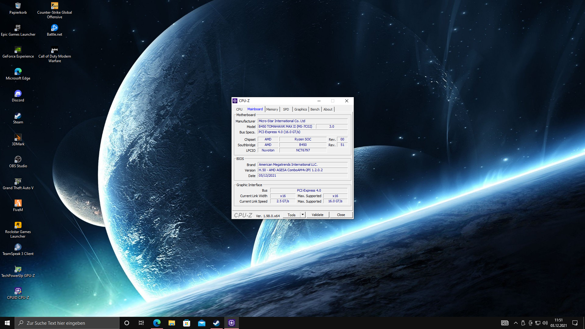 Du musst auch keine krummen Handy-Fotos machen, wir leben im Jahre 2021. Einfach im CPU-Z "ALT+PRINT" und hier im Forum "STRG+V" und schon fügst du den Screenshot der aktiven Anwendung in deinen Forenbeitrag ein.