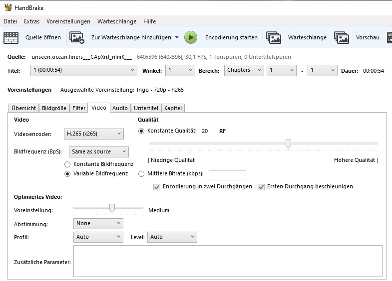 Nun die Frage, wie kann ich Handbrake einstellen, dass ich die gleiche Qualität bekomme wie bei meinen ursprünglichen Settings, aber mit GPU codiere?