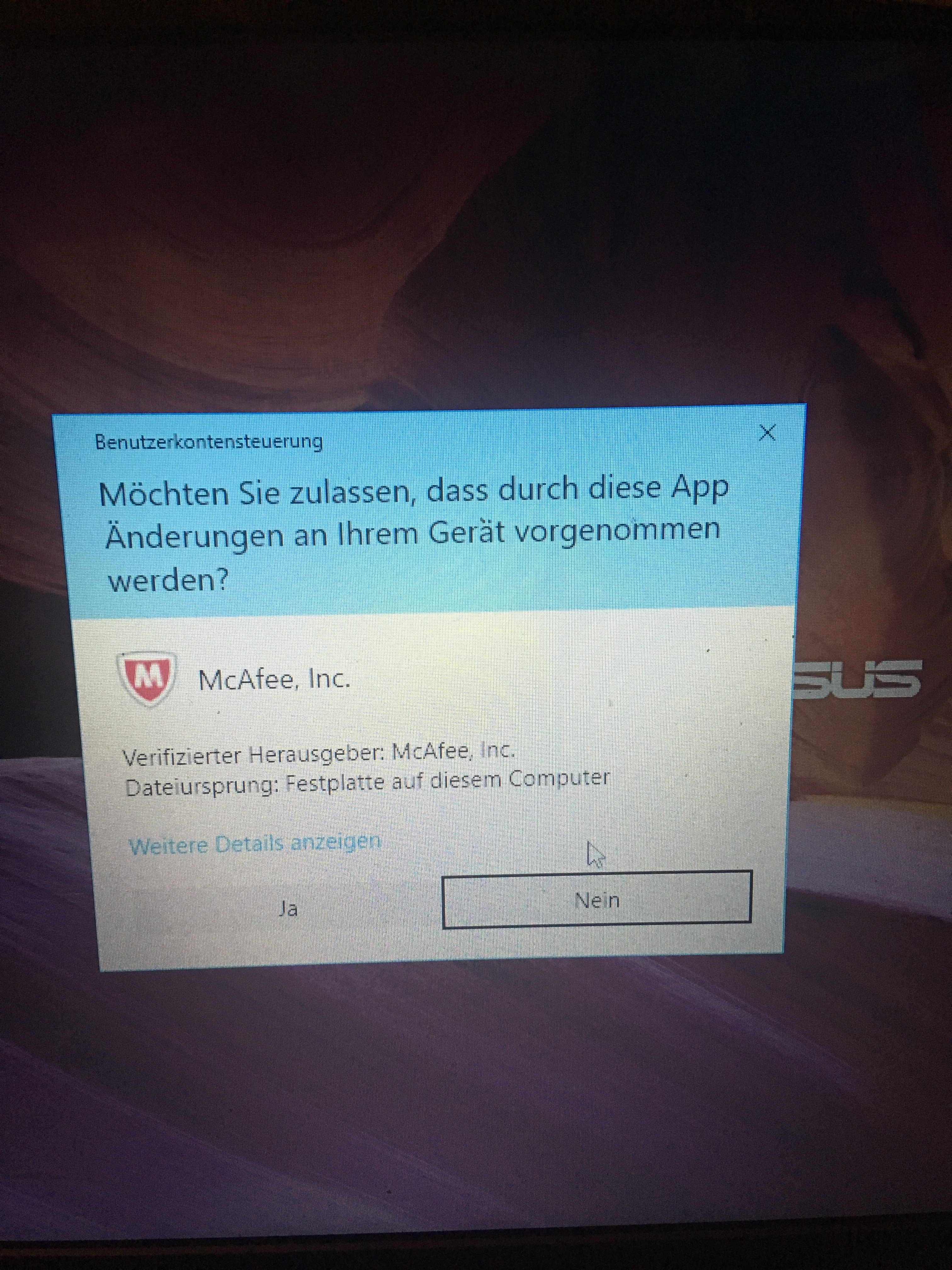 Ich habe heute auf meinem Laptop eine Virus Mitteilung erhalten: