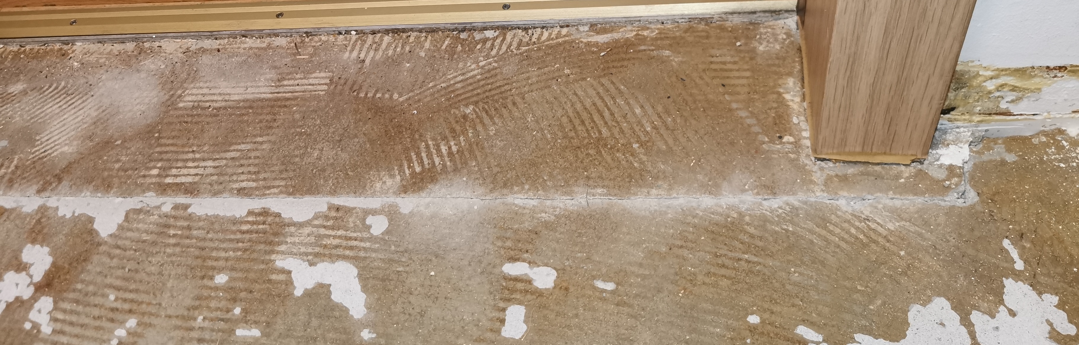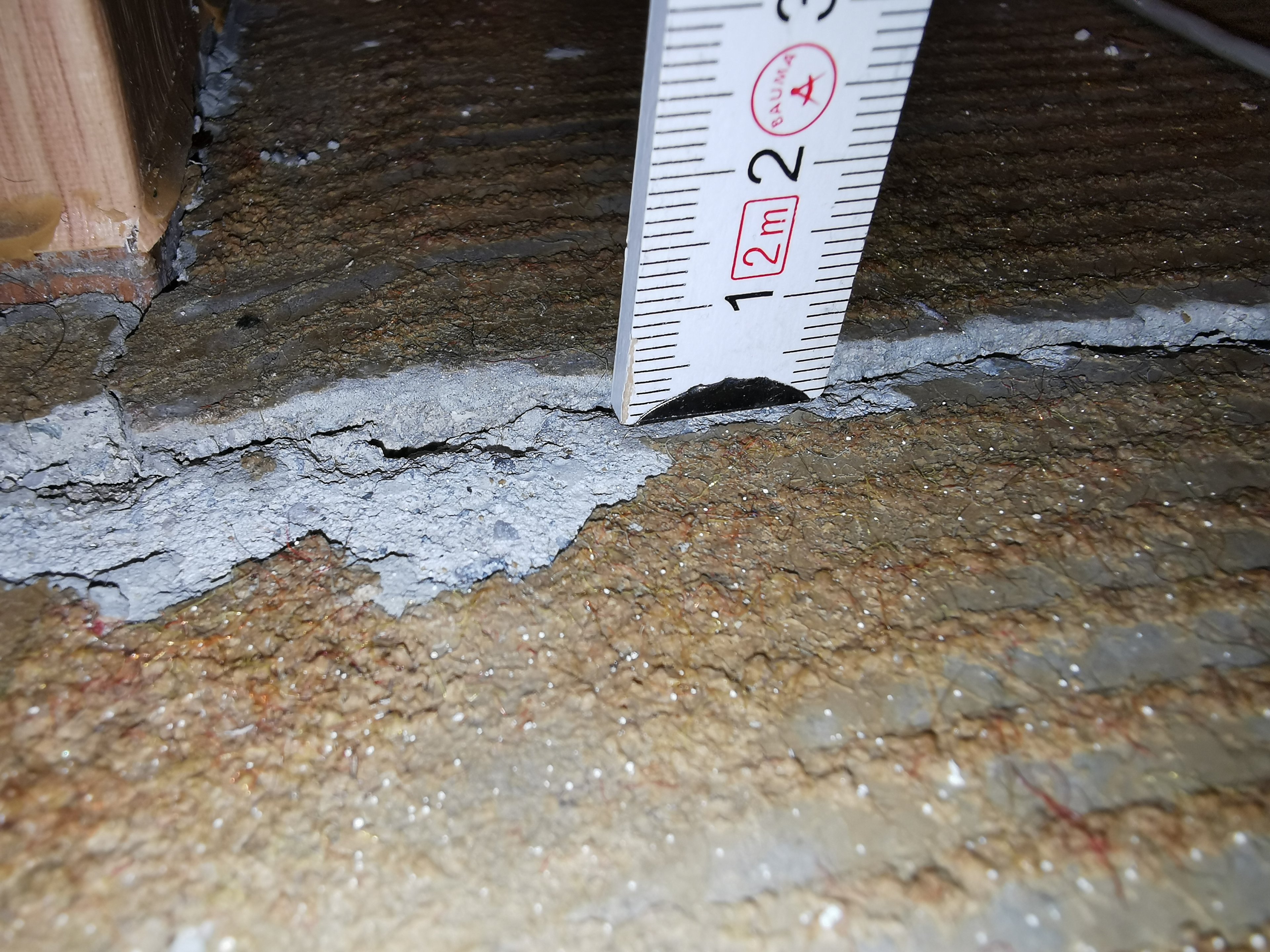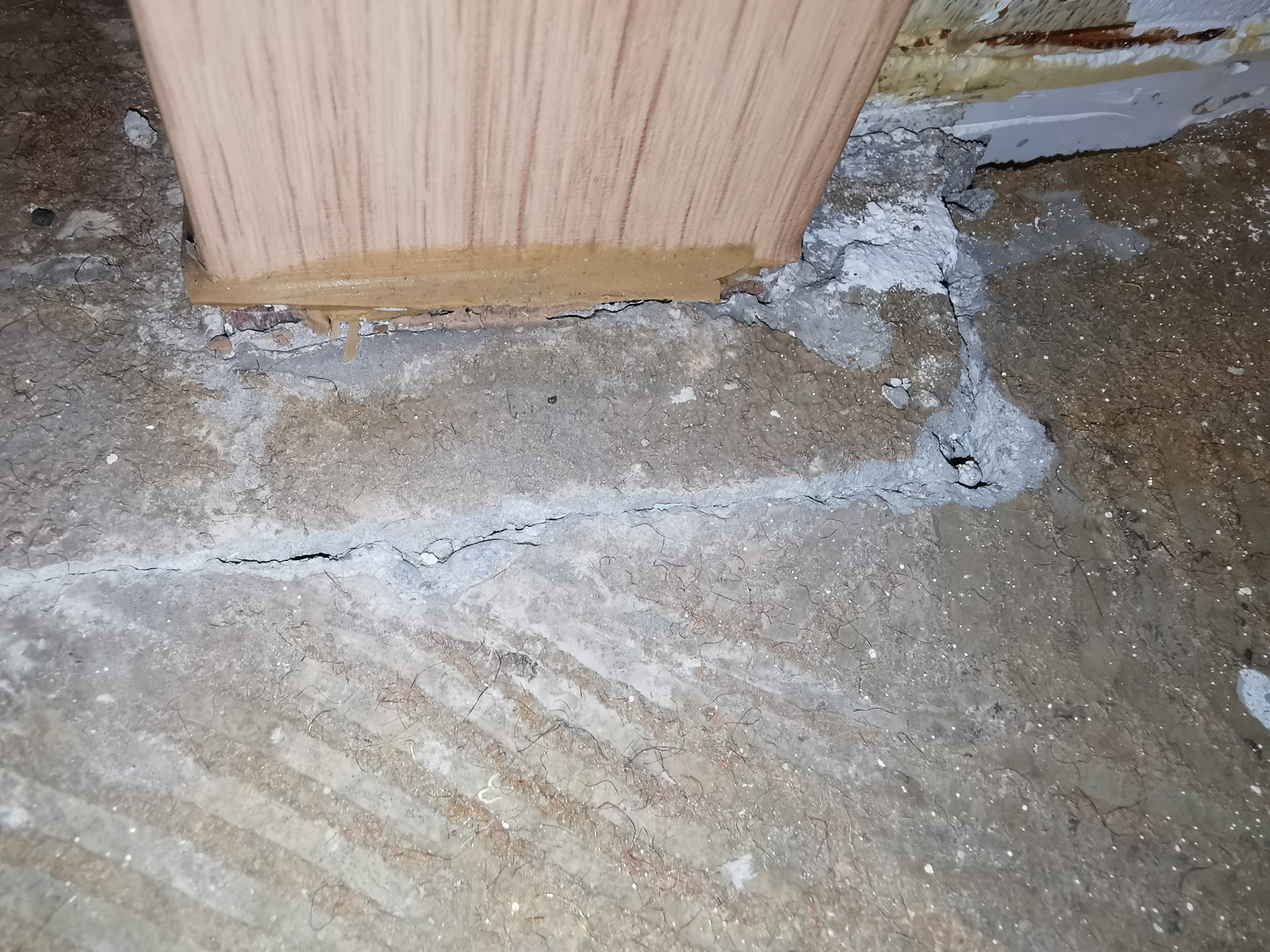 Weil mich das fast wahnsinnig gemacht hat, habe ich nun einmal am Ursprung des Problems den PVC-Boden verschoben und musste feststellen dass der Estrich darunter gravierende Risse an allen Türen(3) aufweist.