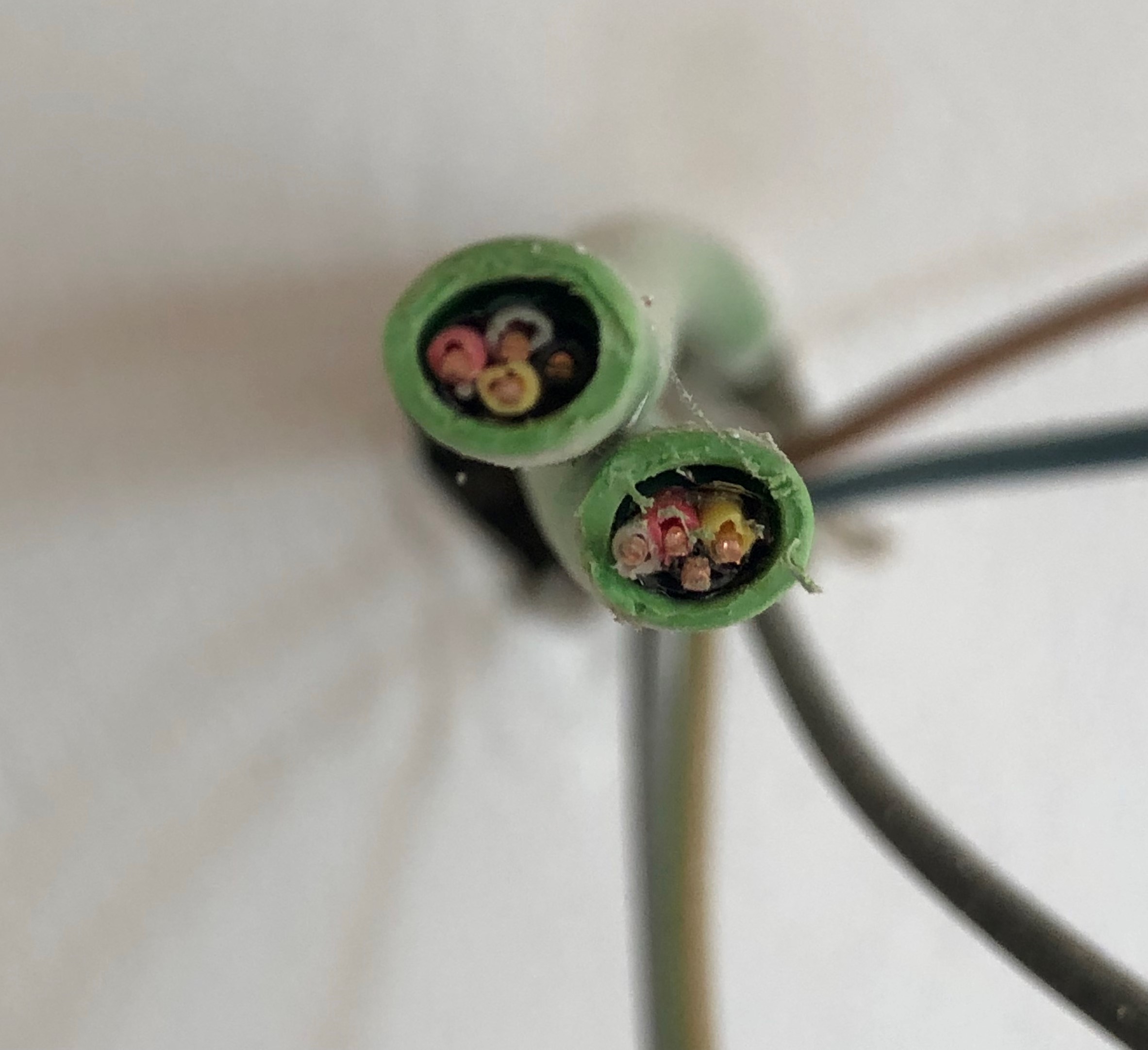 nach Datenkabel sehen die nicht unbedingt aus. Dafür scheint mir der Aderquerschnitt zu groß zu sein. Messe mal den Durchmesser der Adern (ohne Isolierung). Außerdem sehe ich keine Abschirmung auf dem Foto. Entferne mal ein Stück der grünen Isoliereung und schaue mal nach, ob sich eine Abschirmung darunter befindet. Hast du schon mal versucht eine Spannung zu messen?