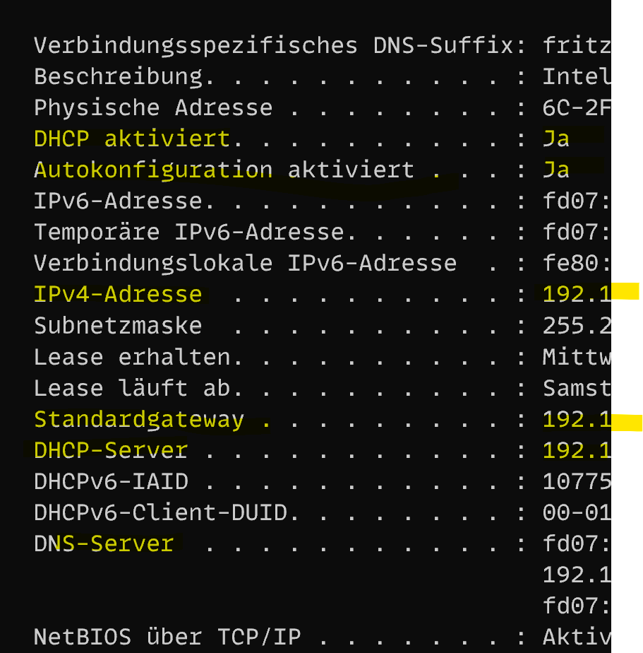 Hallo, ich hoffe, dass das der richtige Bereich ist. Gestern war noch alles okay, wollte dann heute abend an meinen PC und ich bekomme keine internetverbindung. Ich benutze einen TP link als accesspoint, welcher im Keller mit einer fritzbox verbunden ist. Auf diese habe ich keinen Zugriff, da diese zum Hausnetzwerk gehört. Mein Handy und meine switch 2 haben keine Probleme eine internetverbindung auf zu bauen, mein PC bis gestern auch nicht. Entferne ich den Tp link und stecke das Kabel direkt in die Buchse in der Wand bringt auch keine Besserung. Den TP link habe ich mehrmals neugestartet, die Netzwerkverbindung habe ich auch zurückgesetzt. Ich habe sogar eine systemwiderherstellung auf den 17.10 gemacht oder einen neuen Benutzer angelegt. Alles hat nichts gebracht. Die Netzwerkkarte habe ich auch deaktiviert und aktiviert. Den Google DNS habe ich auch schon versucht. Wenn ich im cmd "IP config" eingebe wird mir meine ipv4 Adresse angezeigt, das ist die gleiche die auch in der DHCP Client list auf meinem Tp link angezeigt wird. Kann es sein, dass die Fritz Box im Keller meinen PC plötzlich blockt? Das kann aber eigentlich nicht sein, denn wenn ich den tp link dazwischen schließe sieht die fritzbox doch nur den tp link und nicht mehr meinen PC oder?