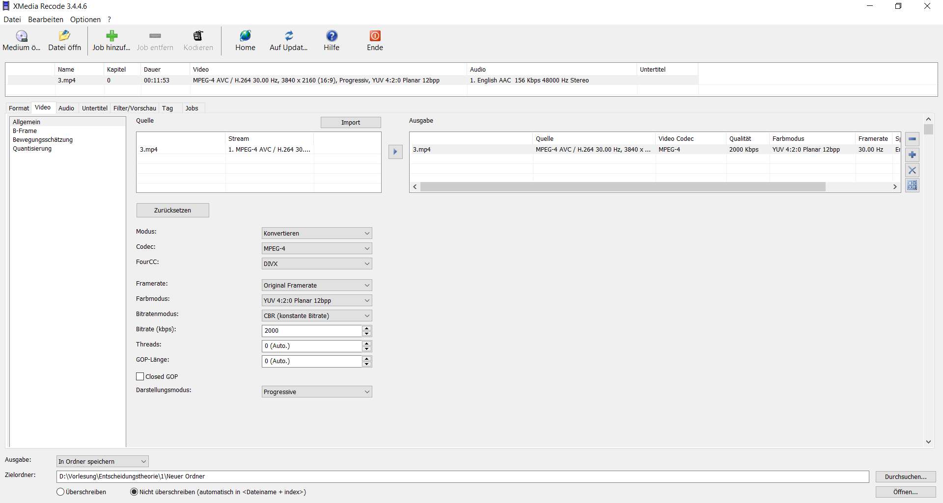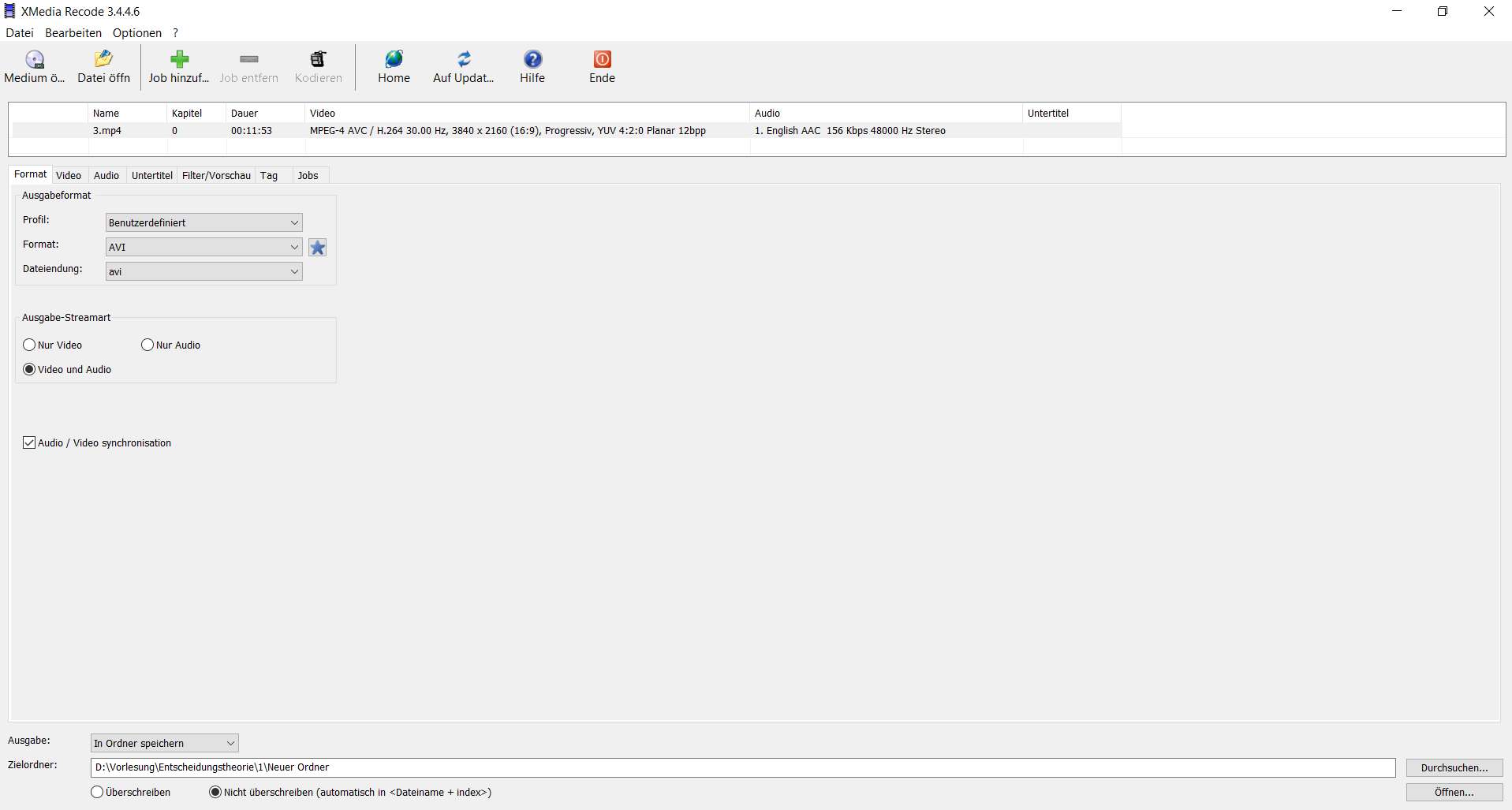 Aber nur für neu kodieren ohne Filter oder Schnitt würde ich XmediaRecode nehmen.
