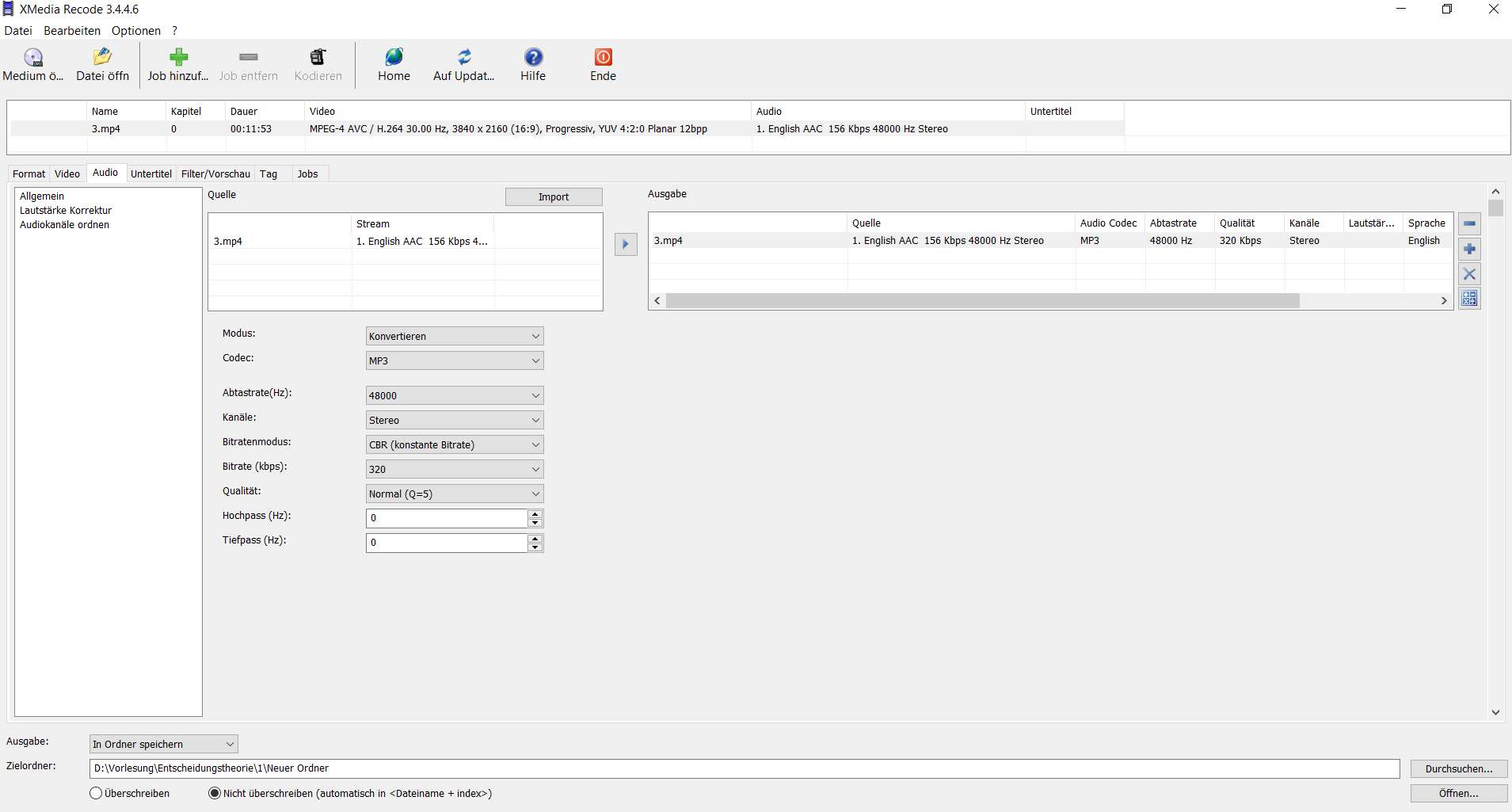 Ist es besser, wenn ich im XMediaRecode unter "Audio" als "Modus" nicht "konvertieren" sondern "kopieren" auswähle? Ist der Ton dann besser?