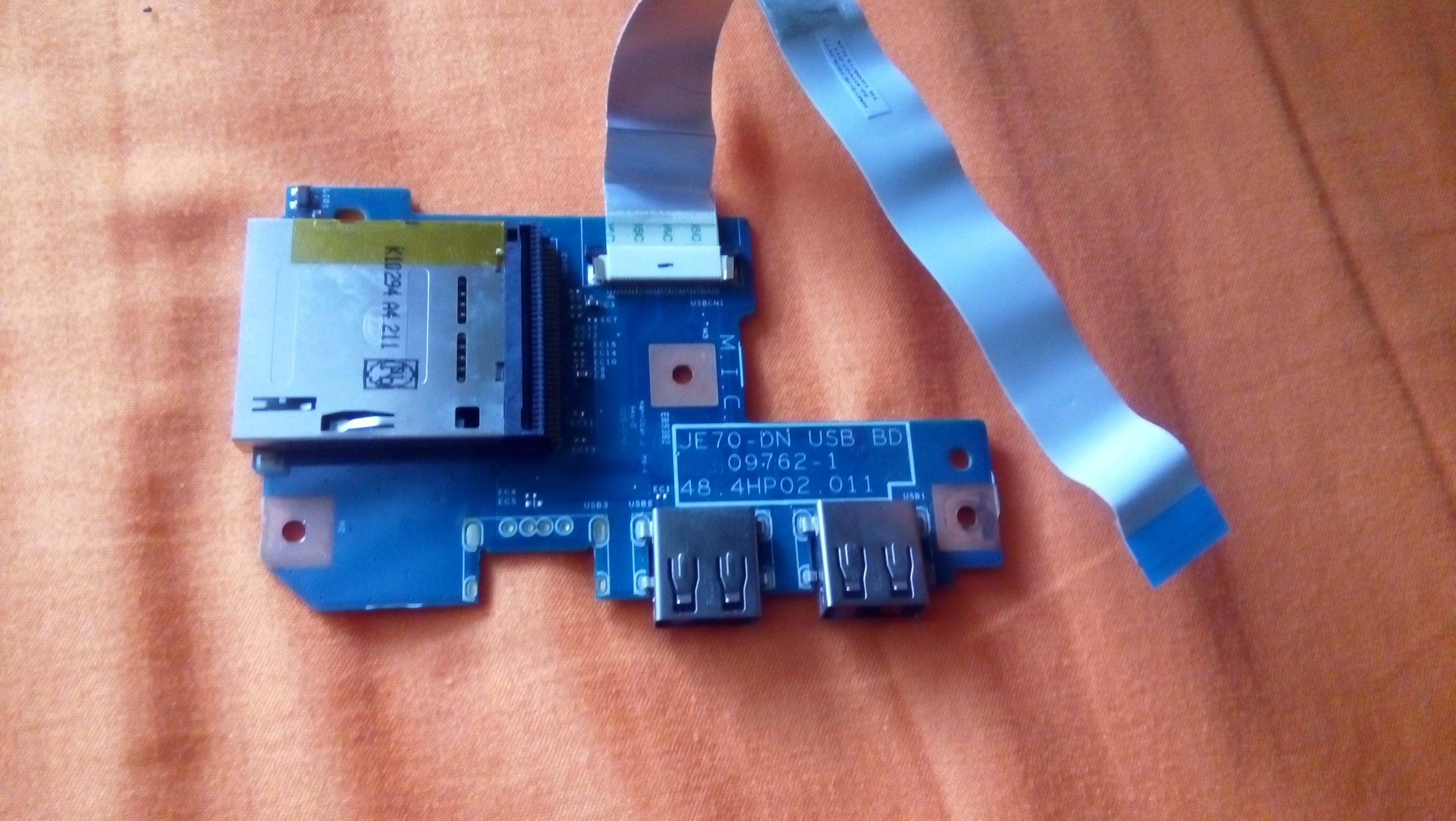 Dabei handelt es sich um diese Platine mit zwei USB Anschlüssen und einem Card reader.