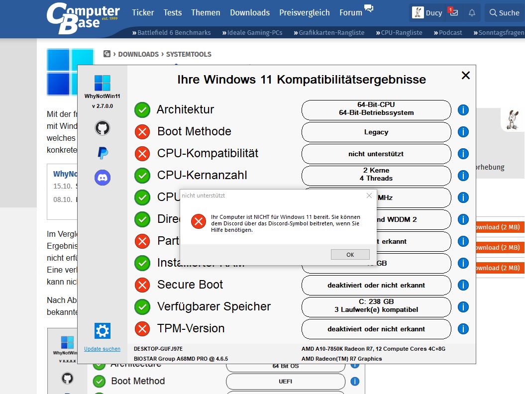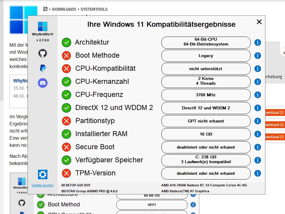 Leider ist die Hardware zu alt, um Windows 11 zu installieren, daher Frage ich mich, wie ich den PC mit schmalem Budget wieder auf den aktuellen Stand der Technik bringen kann.