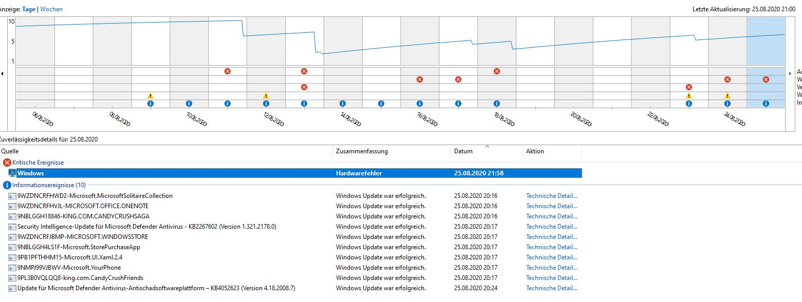 Aufgrund eines Hardwareproblems ist Windows nicht mehr voll funktionsfähig.