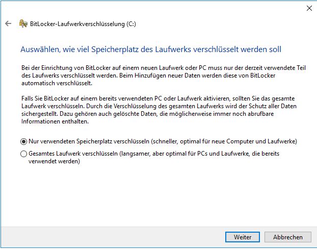 Nun sollte sich doch eigentlich die hardwareseitige Verschlüsselung aktivieren lassen sobald ich Bitlocker aktiviere, leider kommt immer folgendes Fenster auf: