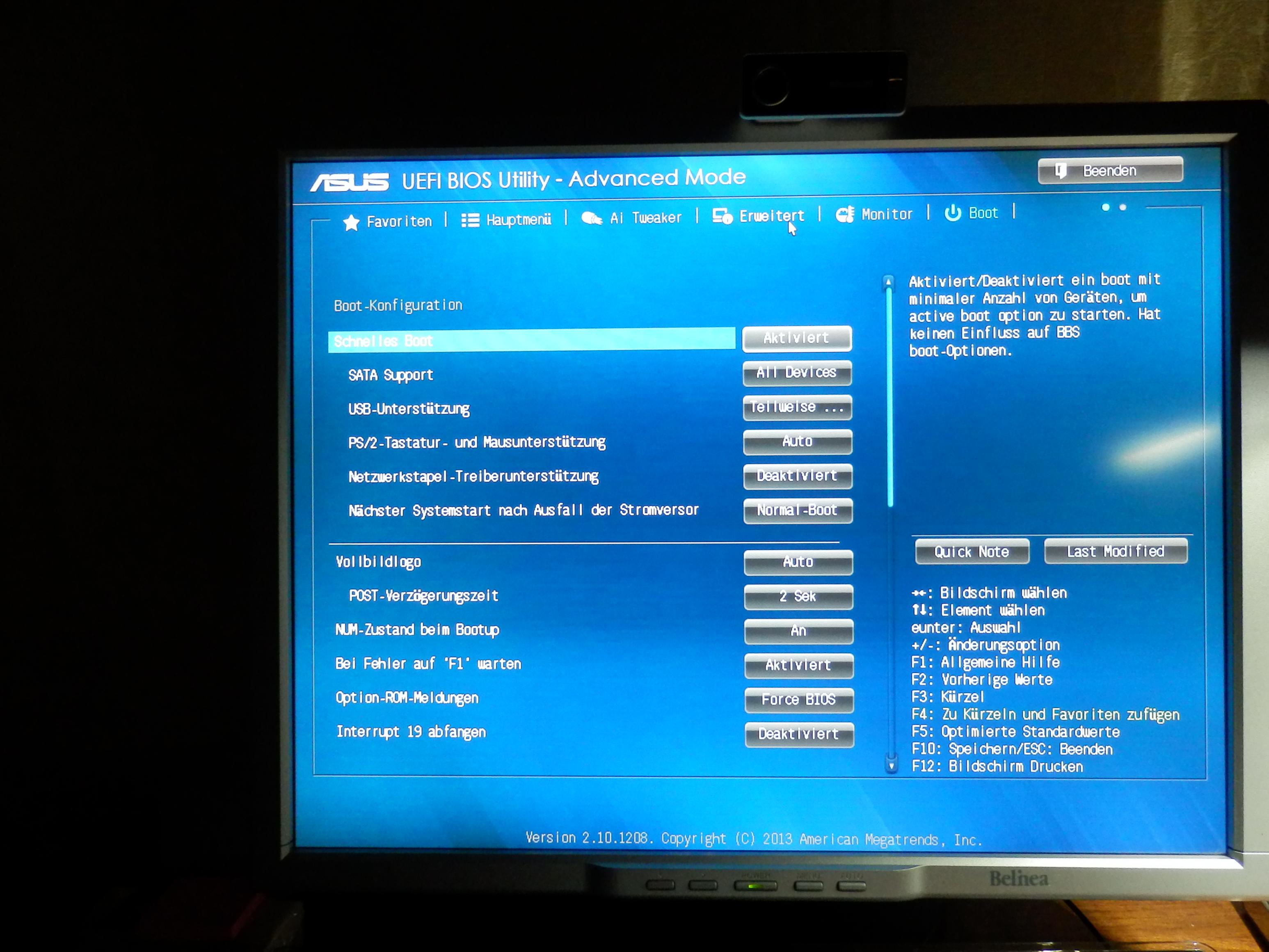 Was mich interessieren würde: Wie schnell bootet denn Dein neues ASUS-Mainboard? Ich rede dabei vom dem Anteil der Bootzeit, der BIOS-abhängig ist, also bis Du zum ersten Mal ein Windows-Logo oder sonst irgendwas auf Deinem Bildschirm siehst, was nicht mehr vom BIOS ist. An dieser Stelle ist ASUS ja berüchtigt, dass ihre BIOSse quälend langsam sind und locker mal 7 Sekunden länger brauchen als etwa Asrock, bis der eigentliche Bootvorgang endlich beginnt. Das hatten wir ja oben schon diskutiert.