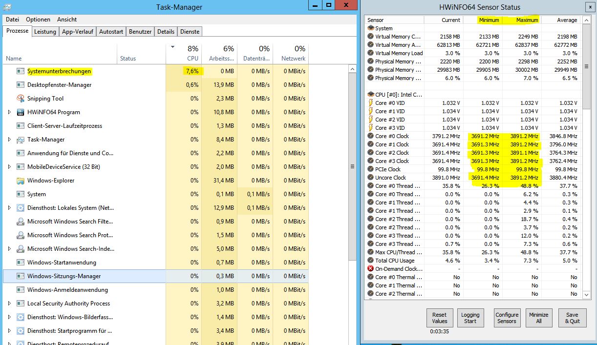 Laufende Programme: HWinfo64 nur Sensor Monitor/ Sniping Tool