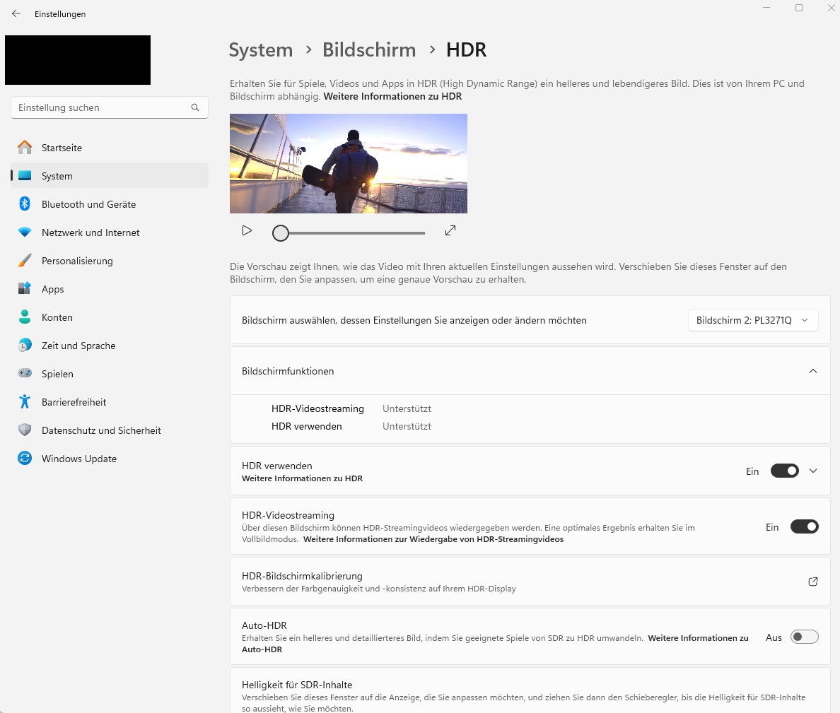 Ich habe einen Iiyama GB3271QSU in Benutzung. Im OSD-Menü des Monitors kann man HDR aktivieren und auch in Windows 11 wird angezeigt, das der Monitor HDR unterstützt.