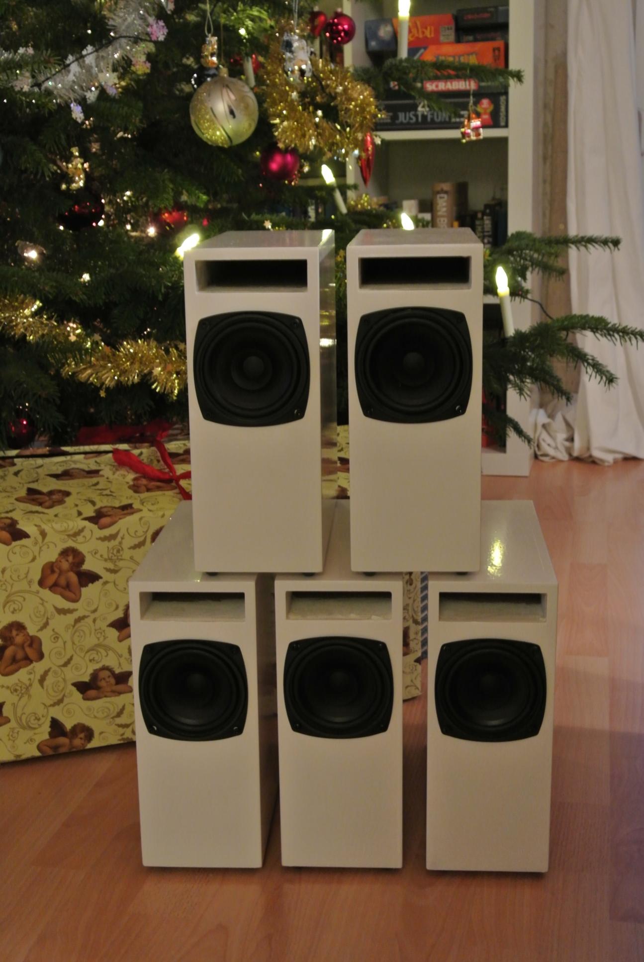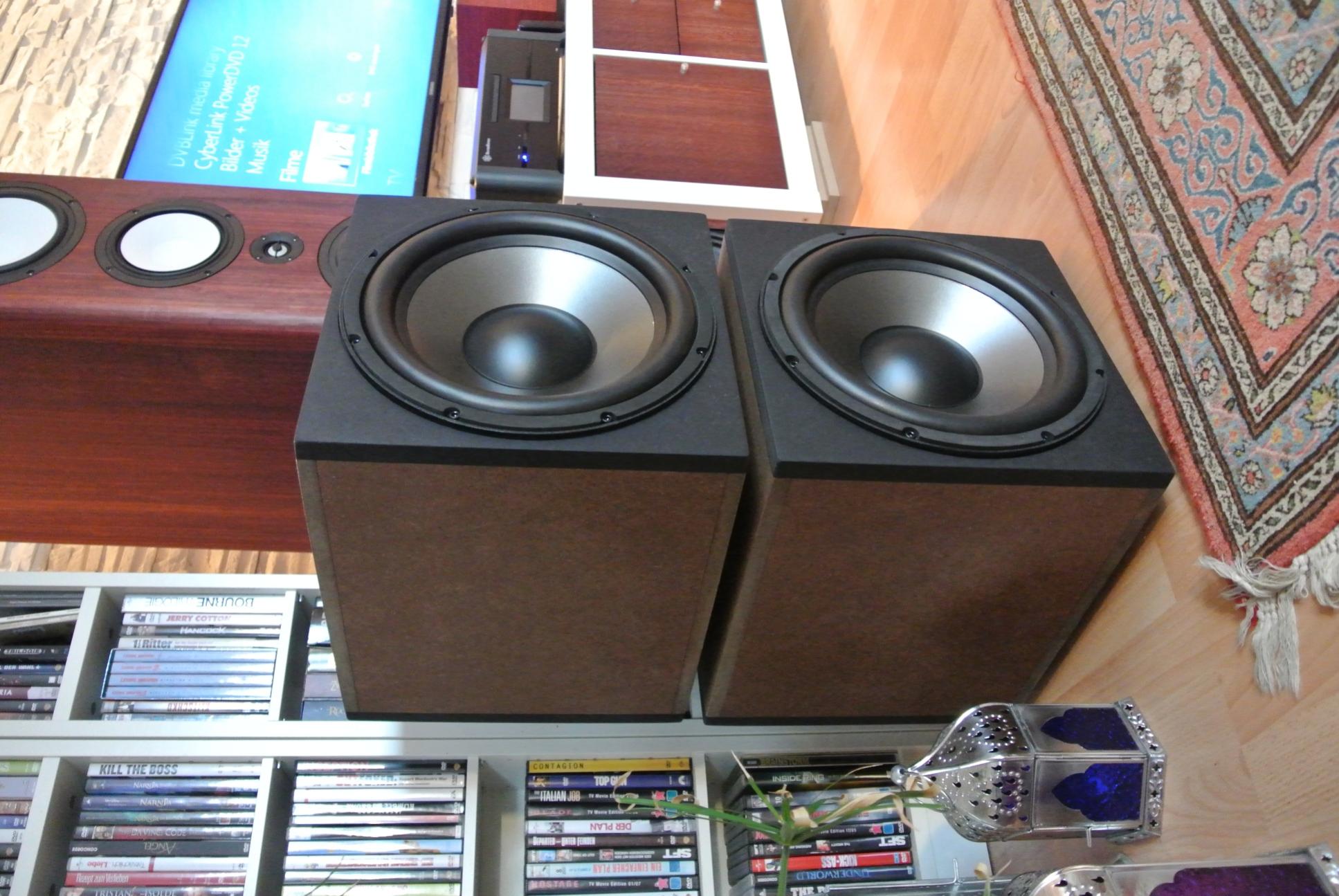 Ich werde gerne noch Fotos vom finalen Einbauort zeigen incl. Polklemmen. Die beiden Woofer stecken nun in einem Expedit-Regal so dass man nur noch die matte Front/Rückseite sieht. Glaubt man kaum, dass das nicht lackiert wurde. Kann man sich auch einzeln als Gehäuse vorstellen. Gibt dem ganzen einen hochwertigen Touch.
