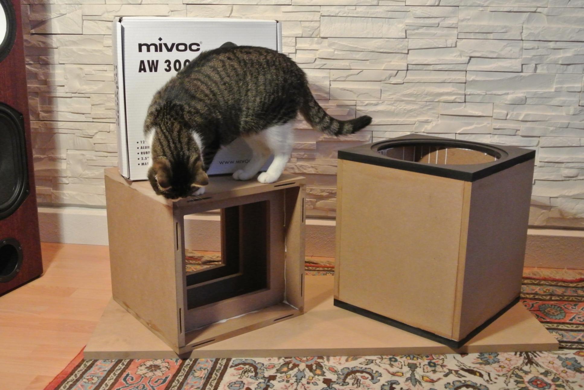 So nun mal die Woofer in aktueller Position. Meine Bauaufsicht hat nur leider ein paar Haare hinterlassen