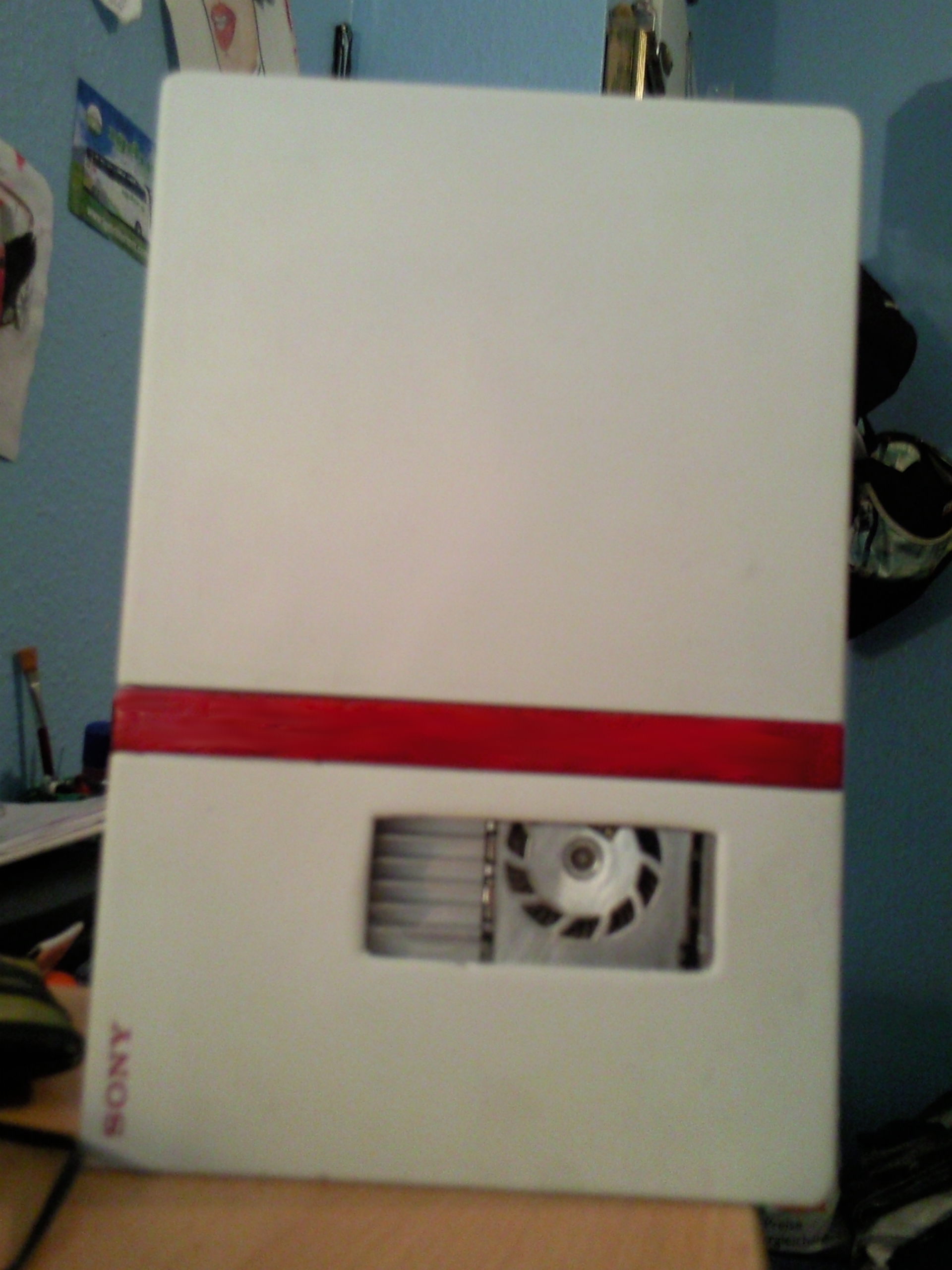 Anbei mein 0€ Ps2 Mod von 2009-habe einfach den dritten Kunstoffstreifen weggedremelt, die Farbe abgeschliffen(das Gehäuse war vorher silber) , ein Loch rein geschnitten und dahinter ein Stück einer alten CD-Hülle geklebt und ein paar bereiche mit Nagellack bepinselt. Das waren noch Zeiten als armer Schüler ^^