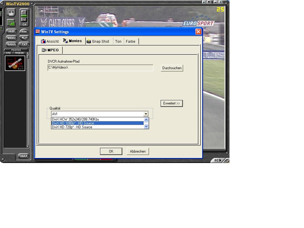 Die karte ist eine WinTv2Go von Hauppauge, die sotware iss(müsste) akktuel sein von HomePage.