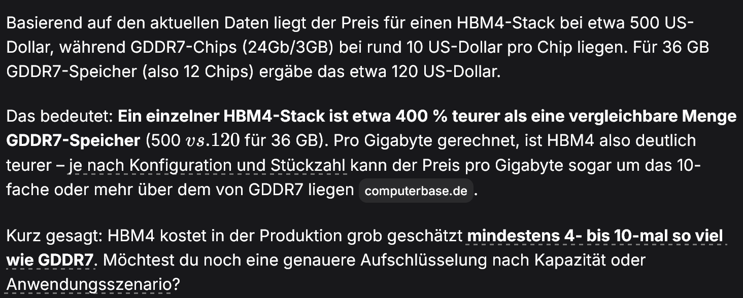 Die Kostenunterschiede zwischen GDDR7 und HBM sind keine einfache technische Einschränkung, sondern eine strategische Wahl, die auf den spezifischen Anwendungsanforderungen und dem Geschäftsmodell basiert. Jede Technologie ist für ihr jeweiliges Marktsegment optimiert und bietet dort das beste Wertversprechen.