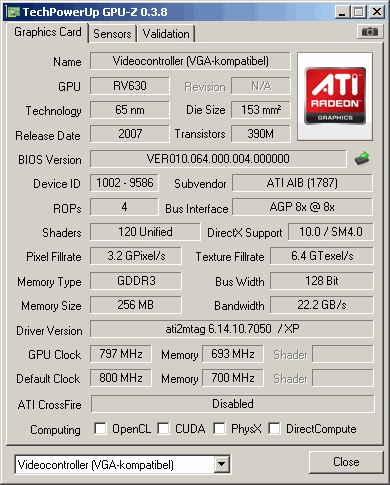 Hallo. Ich habe ein seltsames Problem mit einer HIS 2600XT 256MB AGP Grafikkarte.