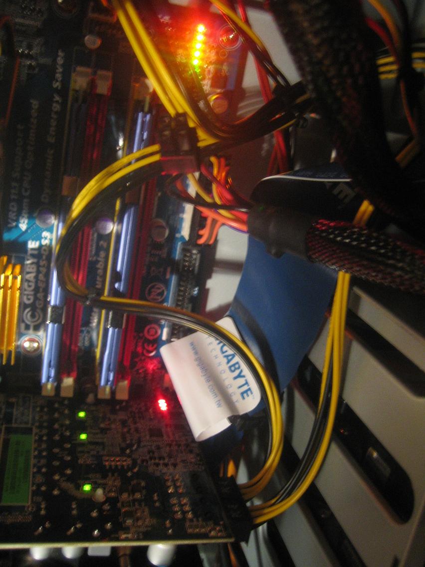Leider bekomme ich nun kein Bild mehr. Der Monitor bekommt kein Signal und die 3 roten LEDs leuchten an meiner HD 4870...