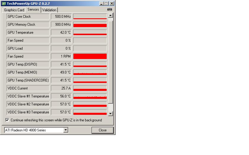 hab jetzt schon seit längerem meinen S1 + rote Grundplatte der HD 4870 montiert inkl. 2x 800rpm Slipstream. Die Temperaturen sind auch mehr als gut im Idle. Allerdings bin ich mir nicht sicher, wie weit ich gehen darf mit dem Takt der GPU + Speicher. Denn die Temps der SpaWas, sofern ich diese richtig lokalisiert habe bei GPU-Z, explodieren unter Last.