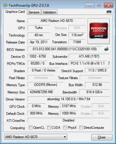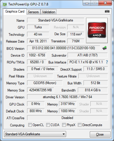 Aber die schlechten folgen sogleich: die HD 6670 funktioniert immer noch nicht und GPU-Z zeigt auch weiterhin Mist an.