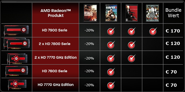 Das ist bei einer HD 7770 oder HD 78xx so. Für die 7950 stimmt das.rephluX schrieb:Leider falsch. Laut der Liste hier gibts nur Far Cry 3 und einen 20% Nachlass auf Medal of Honor.