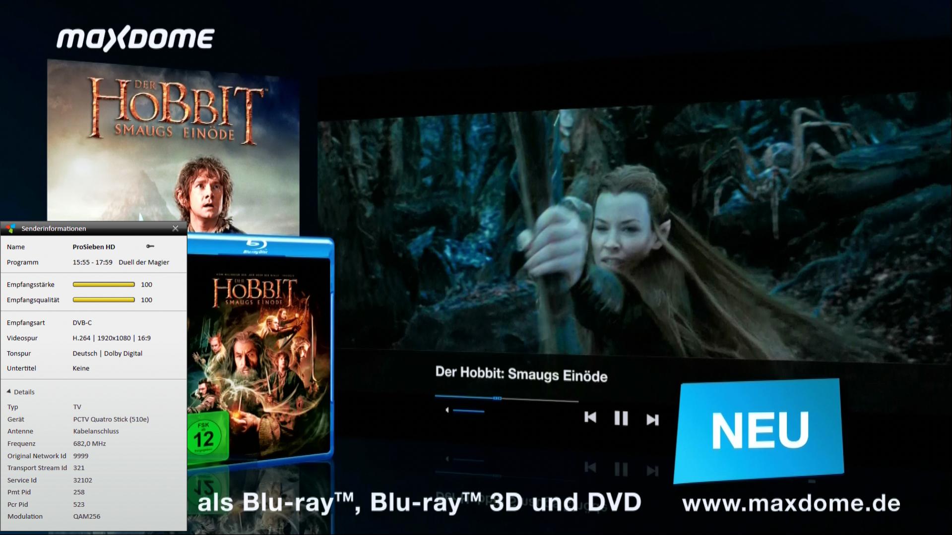 Ich nutze ja meinen PC Multifunktional was auch das TV schauen am PC miteinschließt. Da ich einen Kabelanschluß über Kabel BW habe und derzeit ja die HD-Oster-Aktion von Pro7 & Co. läuft [HD für alle für 4.Tage], habe ich mir das bis jetzt ja auch mal angeschaut und bin doch recht Positiv überrascht. Da ja mein Monitor auch Full HD unterstützt und ich bisher immer nur ARD u. ZDF in HD angeschaut habe, weil diese ja frei zugänglich sind. Mir ist irgendwann mal aufgefallen, als ich die Senderinformation aufgerufen habe, das bei ARD u. ZDF in einer Auflösung von 1280x720 ausgestrahlt wird.