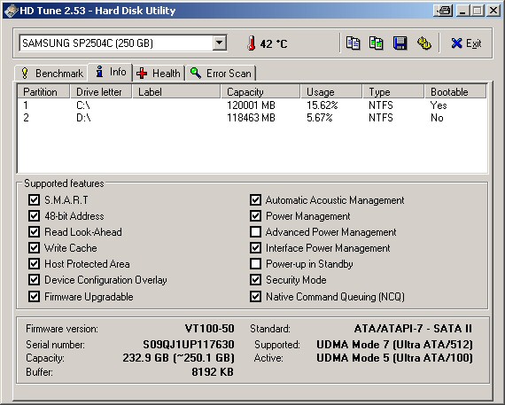 SATA "Samsung SP2504-C VT100-50" an "Gigabyte GA 965 P-S3"