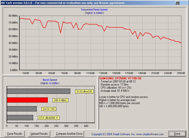 10x so lange) und auch HDTach zeigt ein Burst-Speed von nur 3,7 MB/s! an.