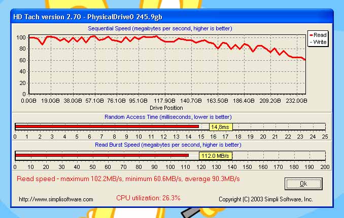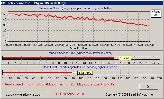 Wegen deiner Platte die an einer Stelle so einsackt, hast du mal probiert zu Defragmentieren ? Wenn nein, dann mach das mal und guck ob es dann weg ist.