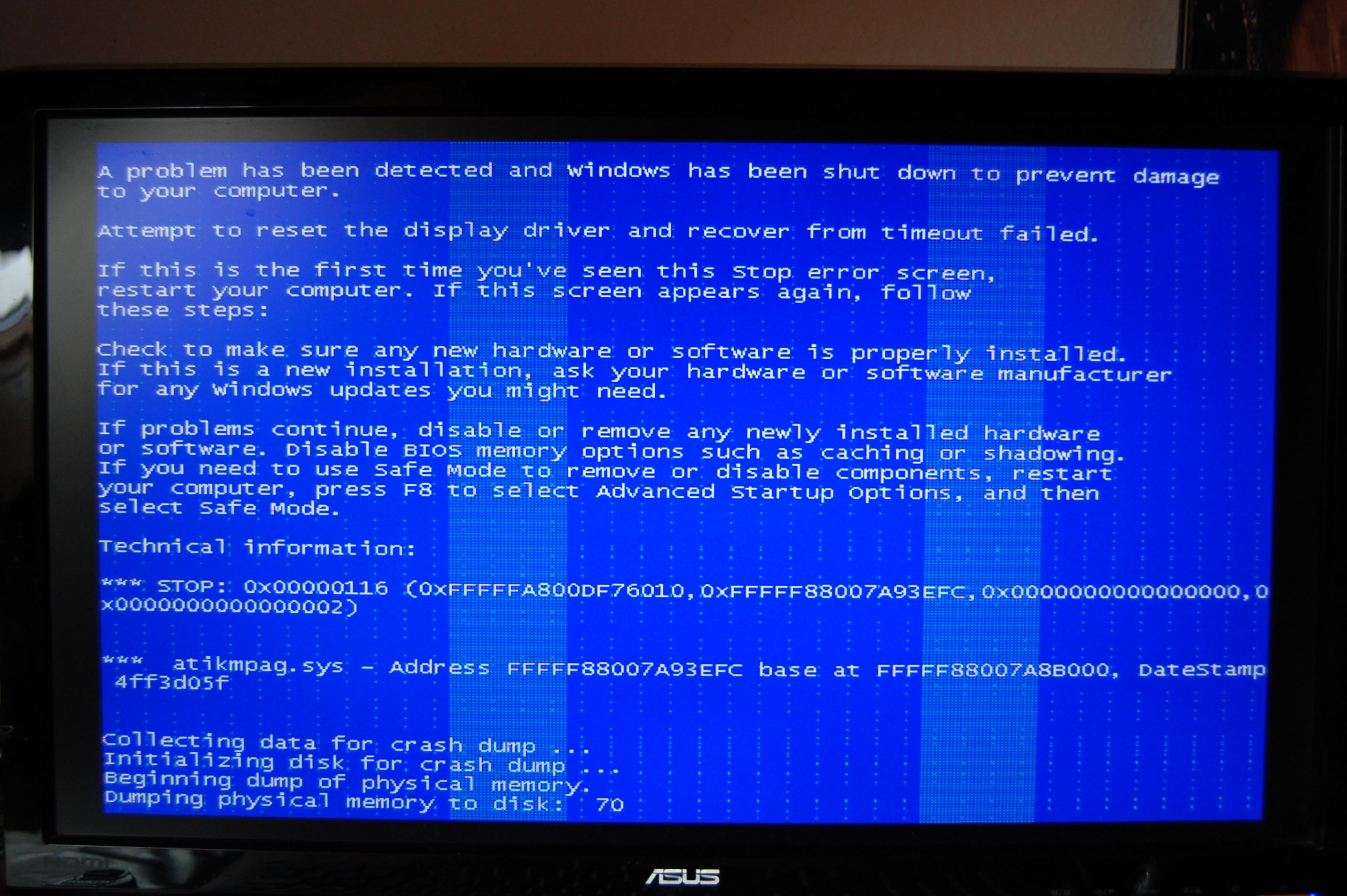 vor etwa einer Woche hat es angefangen: Es treten immer wieder Bildfehler auf, der PC bleibt hängen und stürzt dann mit einem Bluescreen ab. Dieses Problem tritt komplett unvorhersehbar auf, manchmal nur wenige Minuten nach dem Booten, manchmal einen Tag gar nicht, obwohl ich auch mal ein grafikintensives Spiel spiele: