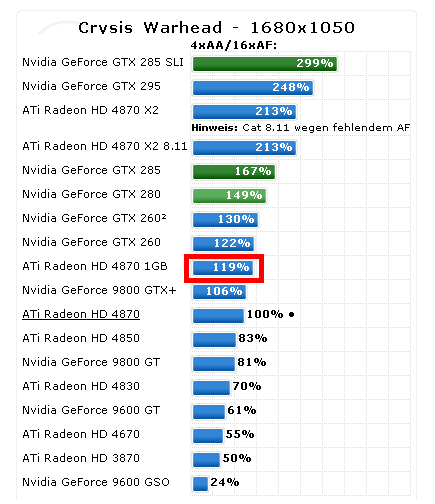 erst ab 2560x1600 4xAA/16xAF leistet die 1gb version 11% mehr...ansonsten liegt die 4870 mit der 48701gb gleich auf...