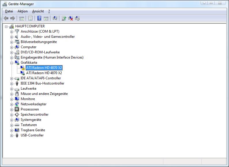 habe ein Problem mit den Catalyst treibern. Ab der Version 8.11 wird meine Sapphire Radeon 4870 X2 nur noch mit einem Kern im Gerätemanager angezeigt. Der Zweite Kern hat ein Ausrufezeichen im Gerätemanager. Ich verstehe das nicht. Bei der Version 8.10 funktioniert alles wunderbar. Im Gerätemanager werden ganz normal ZWEI Radeons 4870 X2 angezeigt. Aber höher wird die eine als Fehler angezeigt.