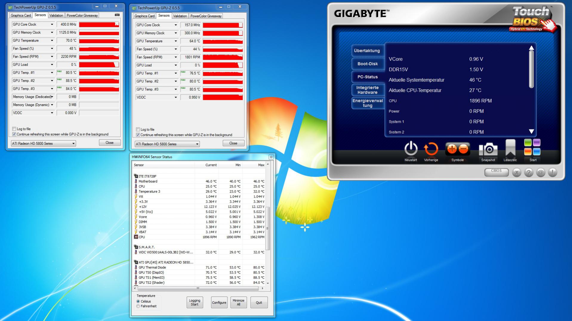 ich habe Probleme mit meinen Grafikkarten bzw. es könnte sein, das es sich um ein Problem mit einer der Karten handelt. Ich habe zwei identische Sapphire HD5850 Toxic im verbaut. Lasse ich das System mit deaktiviertem CF laufen (in Catalyst deaktiviert) habe ich keinerlei Probleme und das System läuft stabil. Sobald ich jedoch das CF aktiviere ist es alles andere als Stabil, ab und an raucht der Treiber ab, z.B. BF3 stürtzt ab oder ich erhalte BSOD's.