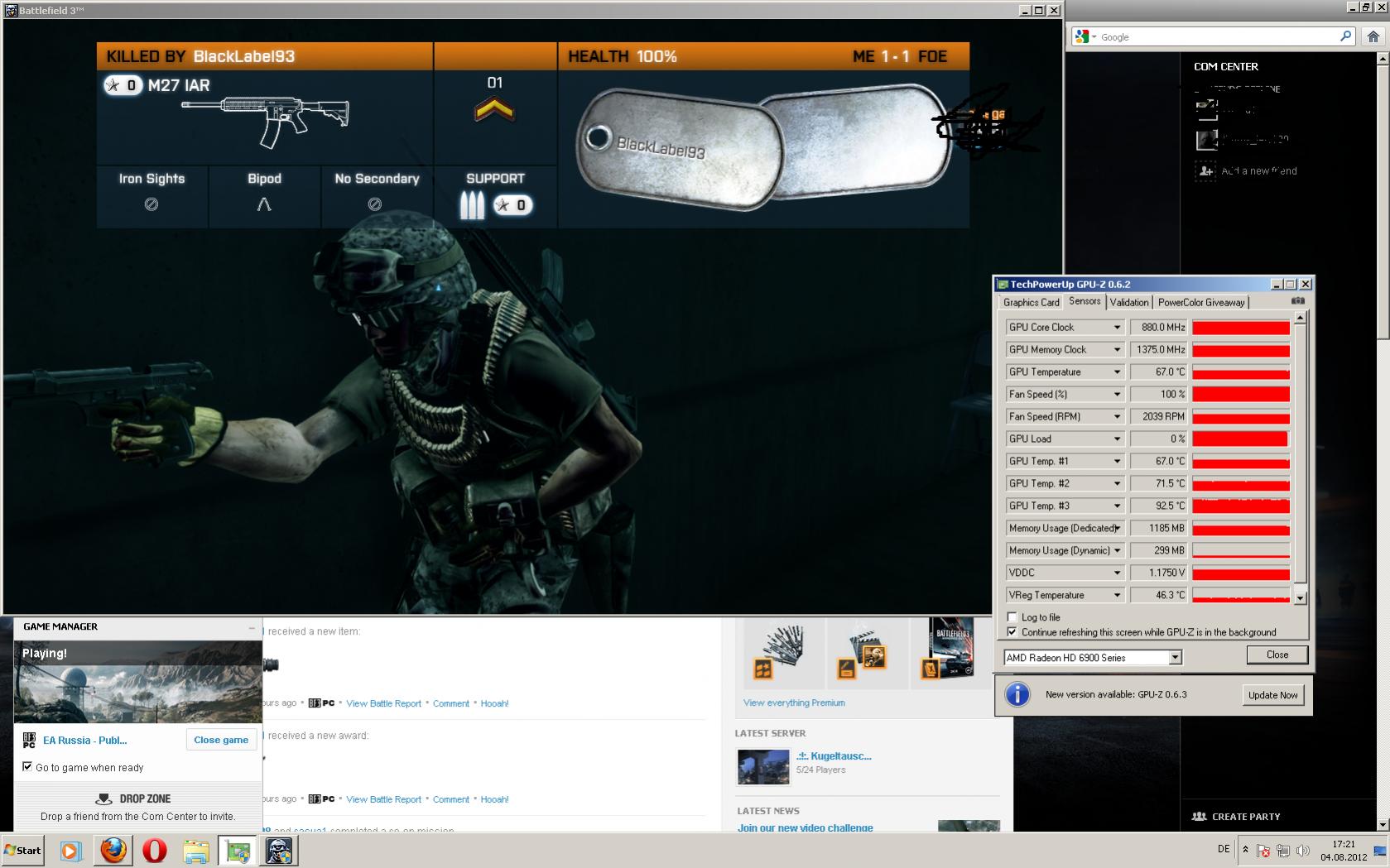 mach mal nen screenshot von gpuz wenn es im hintergrund offen war beim bf3 zocken ...