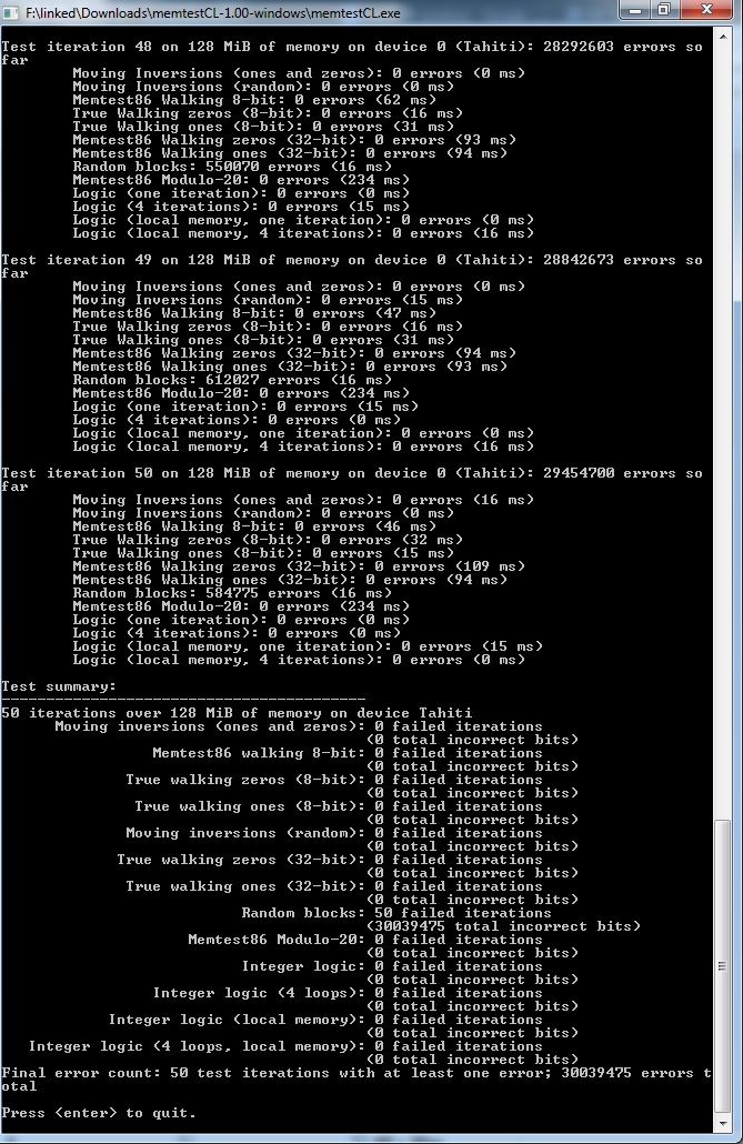 kann es sein dass das Tool irgendwie spinnt? Ich habe heute meine beiden HD7850 damit getestet beide spucken jeweils "50 Random Blocks" aus. Wäre nett wenn jemand es mal bei sich testen könnte.