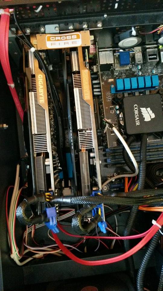Da in der Front ja schon deine CPU-KÜhlung hängt, bekommen die Karten ja schon nur warme Luft. Wenn Du die Möglichkeit hast, lass einen Kühler vom Seitenteil einblassen. Der Lüfter im Deckel sollte ausblasend montiert sein, da warme Luft bekanntlich nach oben steigt. Bei einem Crossfireverbund sollte schon eine gute Belüftung der Karten erfolgen. Vorallem wenn diese noch OC laufen sollen.
