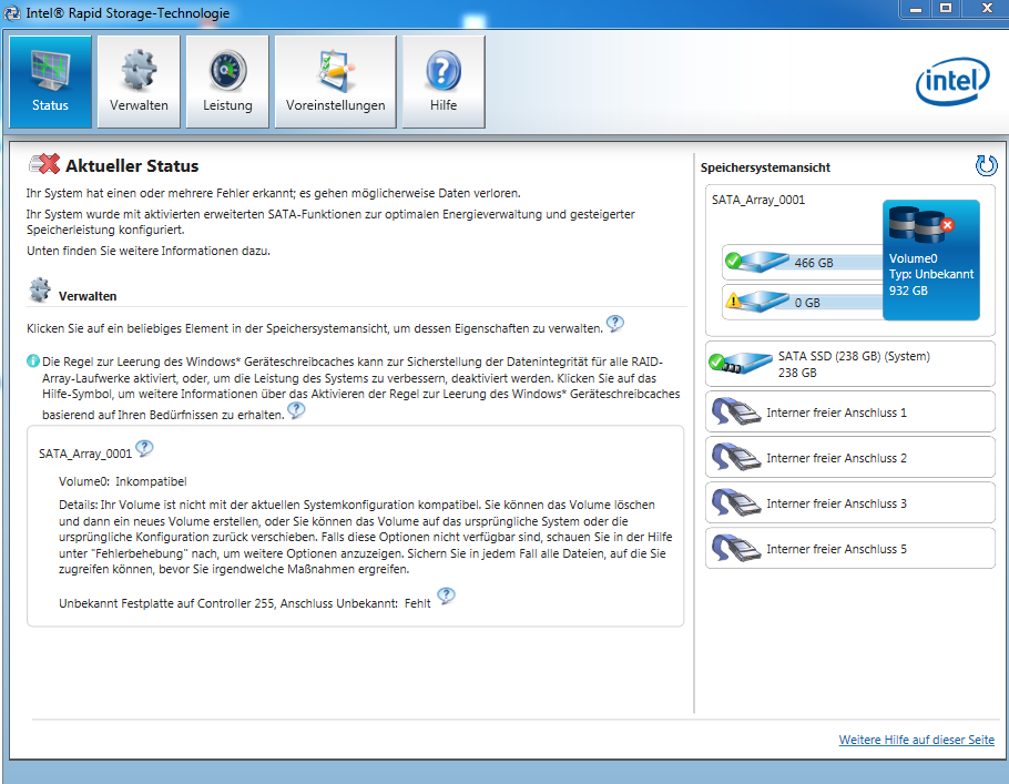 Habe schon im Intel RST-Programm das aktivierte Link Power Management deaktiviert (und den PC neugestartet), eine Veränderung brachte das aber nicht.