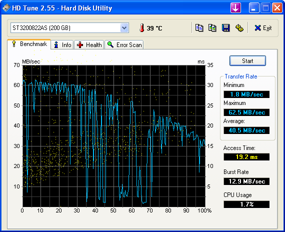 Ich habe nochmal ein Benchmark mit HD-Tune gemacht, dessen Bild ich eingefügt habe...